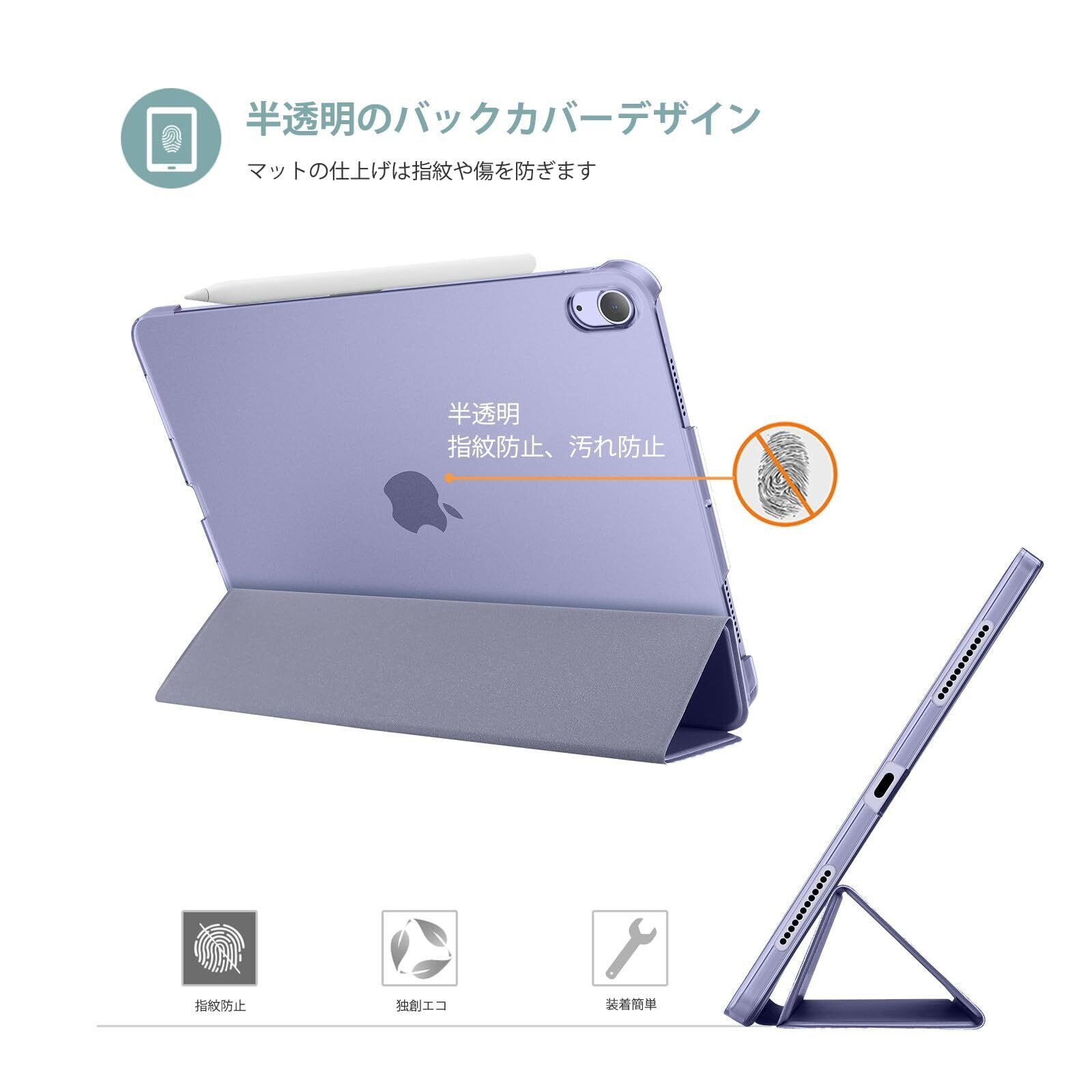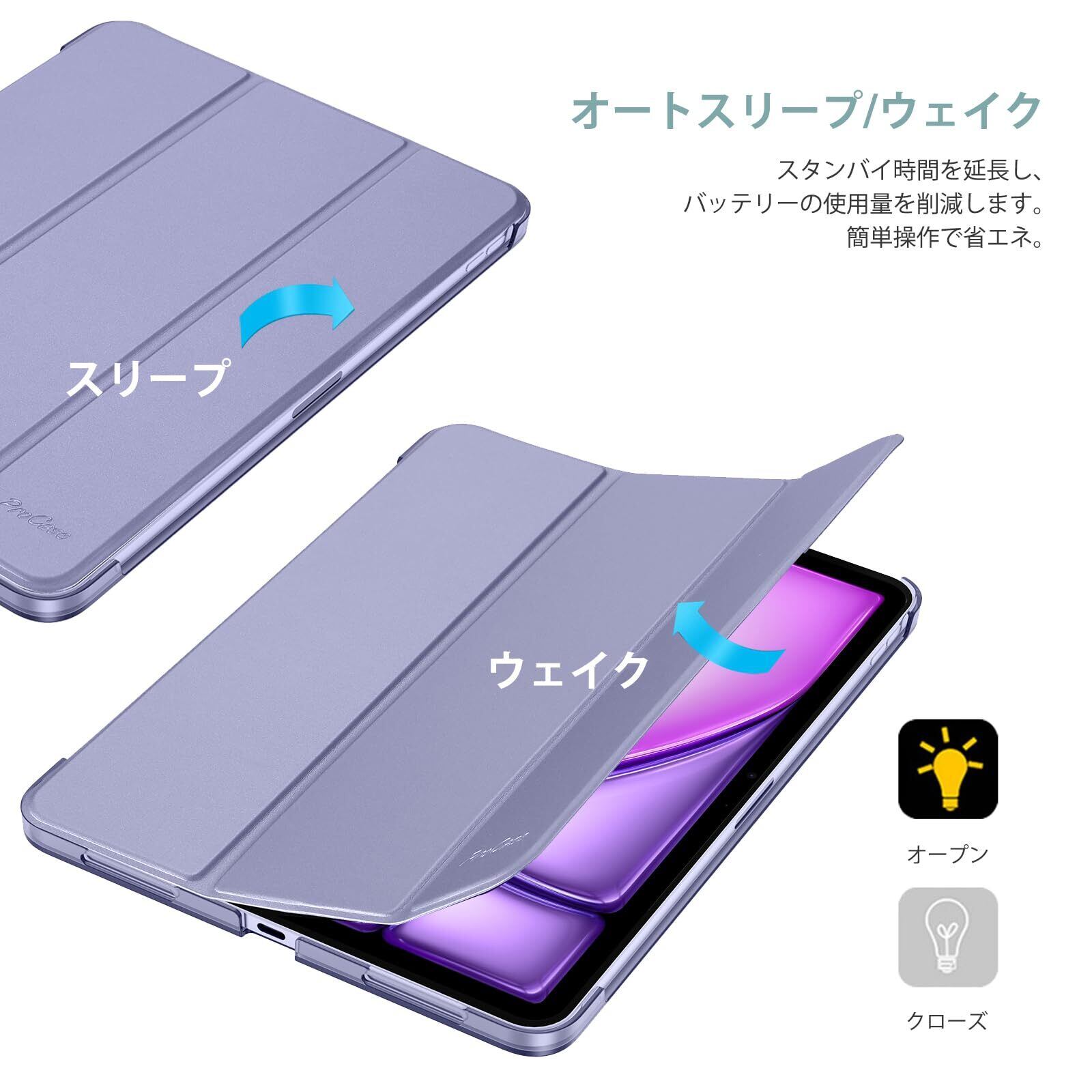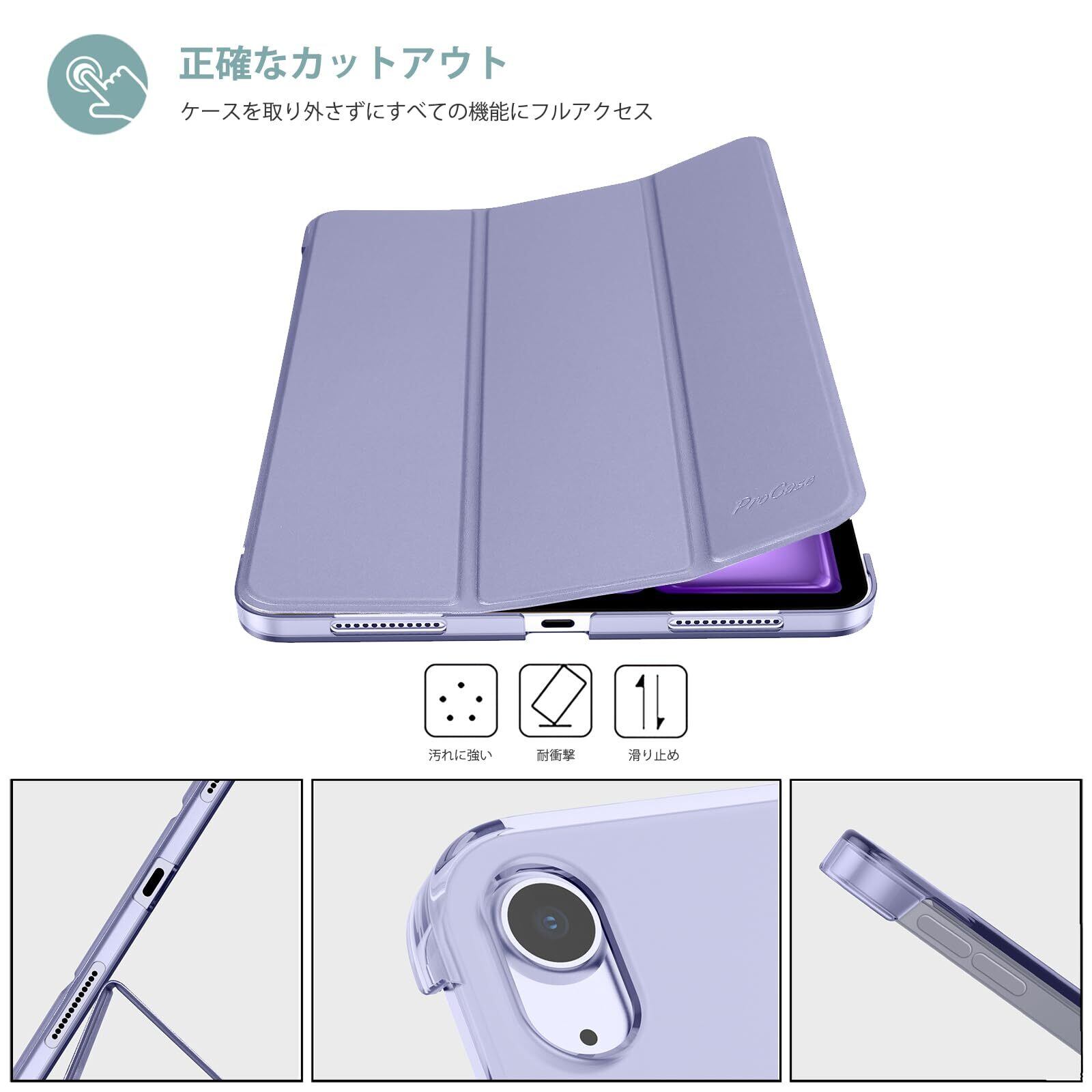 ProCase iPad Air 11インチ ケース M3 (2025) / M2 (2024) / iPad Air 第5世代 / 第4世代 軽量 スタンド 三つ折り フォリオ保護ケース 半透明バックカバー Apple Pencil 2対応 対応端末:iPad air 11インチ M3 (2025)、M2 (2024)、iPad Air5 2022、Air4 2020 - パープル