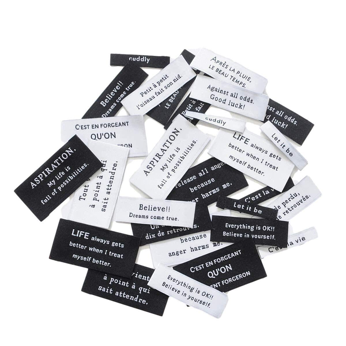 MYmamaオリジナル 魔法のモノトーンタグ 14デザイン 28枚入 裁縫材料 手芸用品 (6669-3 【刺繍タグ:ミックス】28枚入)
