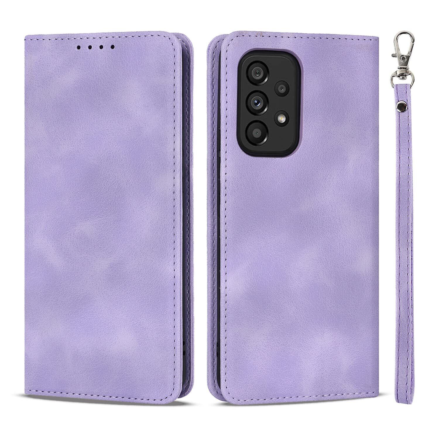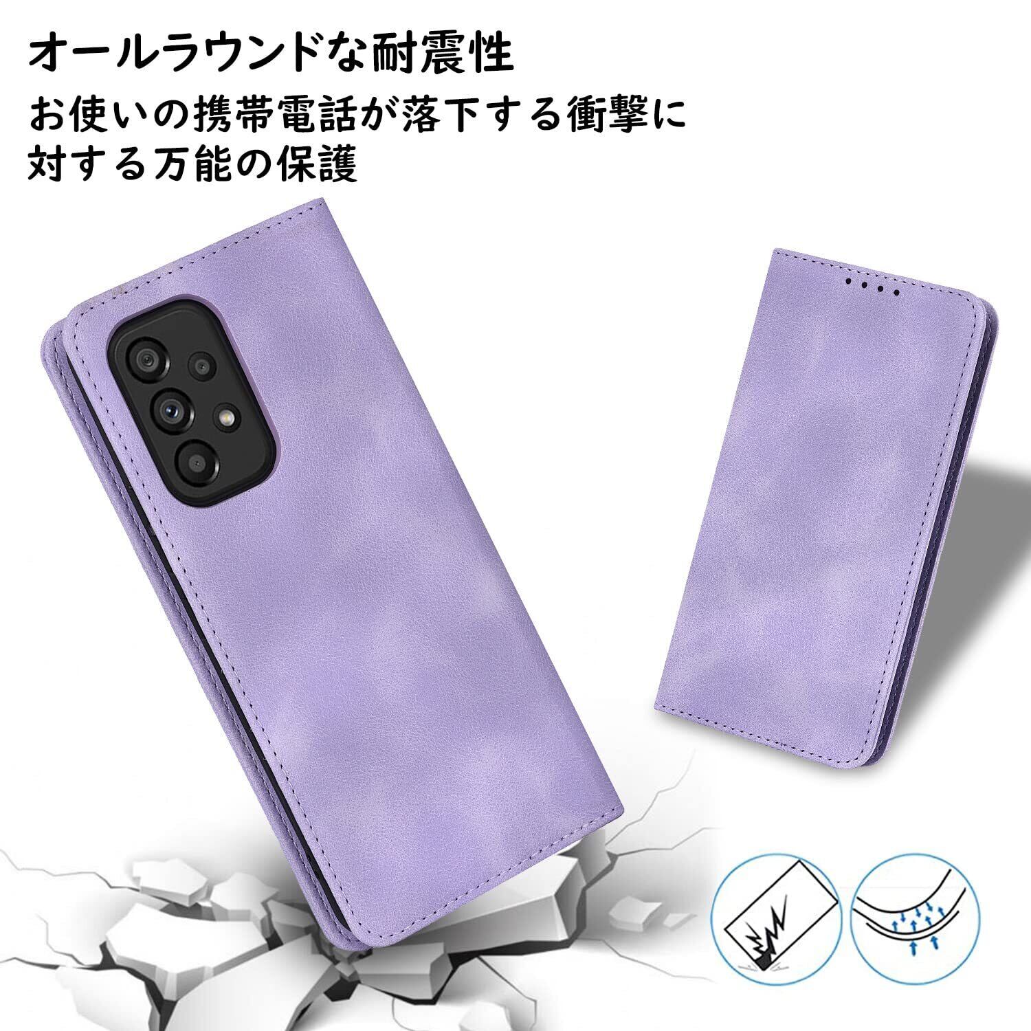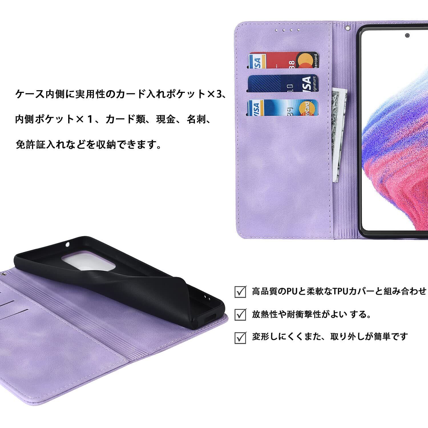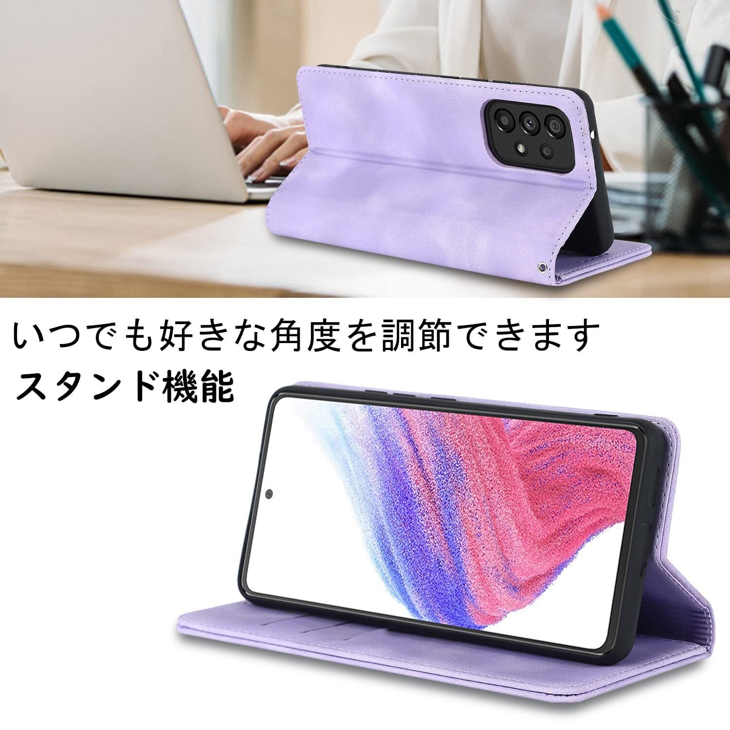 Havaya 対応 Galaxy A53 5G ケース ギャラクシーa53ケース 手帳型 ストラップ au SC-53C docomo SCG15 SC53C カバー 耐衝撃 ドコモ サムスン カード収納 SoftBank スエードの質感-パープル