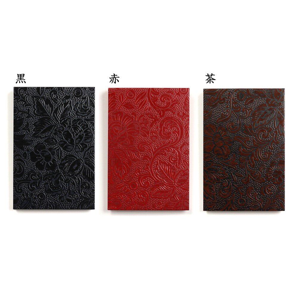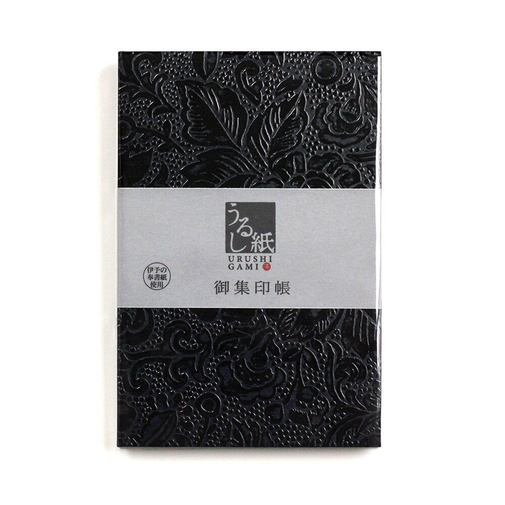 卒業証書の筒型ケースにも使われる、美しく丈夫な「うるし紙」の集印帳。シンプルで味わいのあるデザイン。