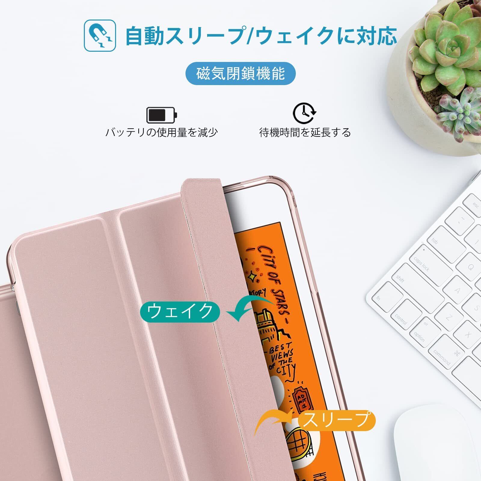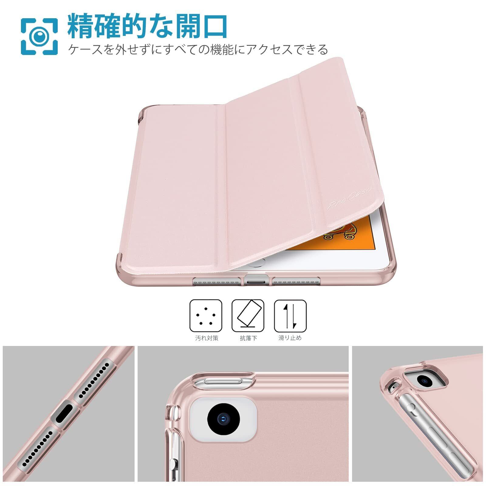 ProCase iPad Mini 5/4/3/2/1 保護ケース 三つ折り フォリオ オートスリープ/ウェイクに対応 TPUバック スマートカバー スタンド機能付き 適用端末:7.9” iPad Mini 5 (2019)/ Mini 4, Mini 1 2 3‐ピンク