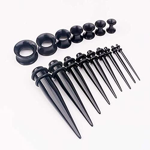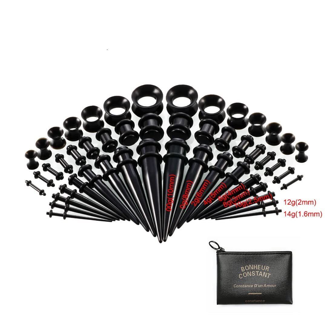 Vogem 拡張器 ピアス セット 50点 アクリル シリコン製 ボディピアス 14G-00G ダブルフレア トンネル ゴム キャッチ エキスパンダー アクセサリー 金属アレルギー対応 男女兼用 (ブラック, アクリル)