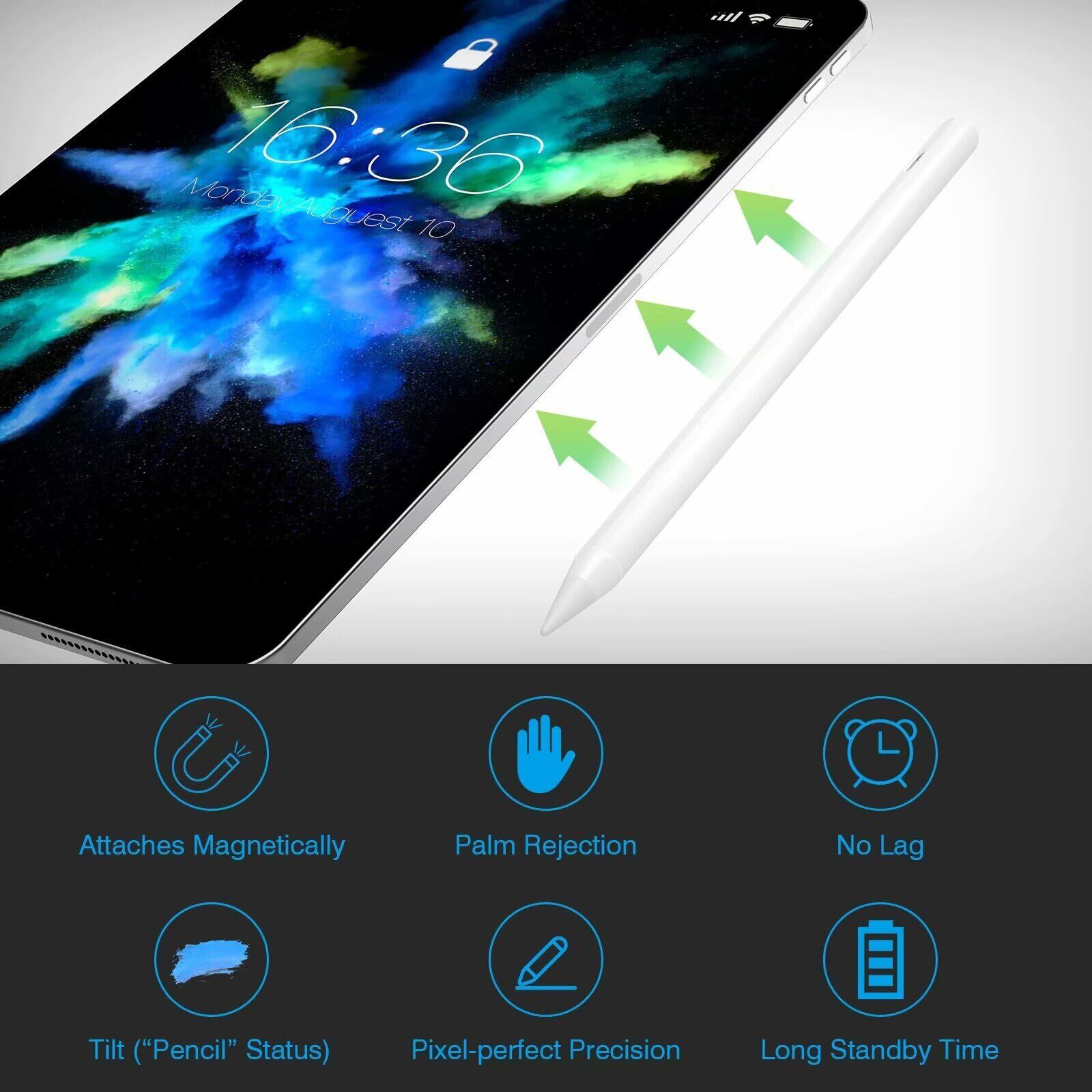 MILPROX タッチペン iPad (2018年-2023年の機種に適用) 用スタイラスペン 超高感度 軽量 磁気吸着/傾き感知/誤作動防止/自動オッフ/耐摩 アクティブ ペンシル USB充電式 2018年以降iPad/Pro/air/mini5/2021/Mini 2021 対応