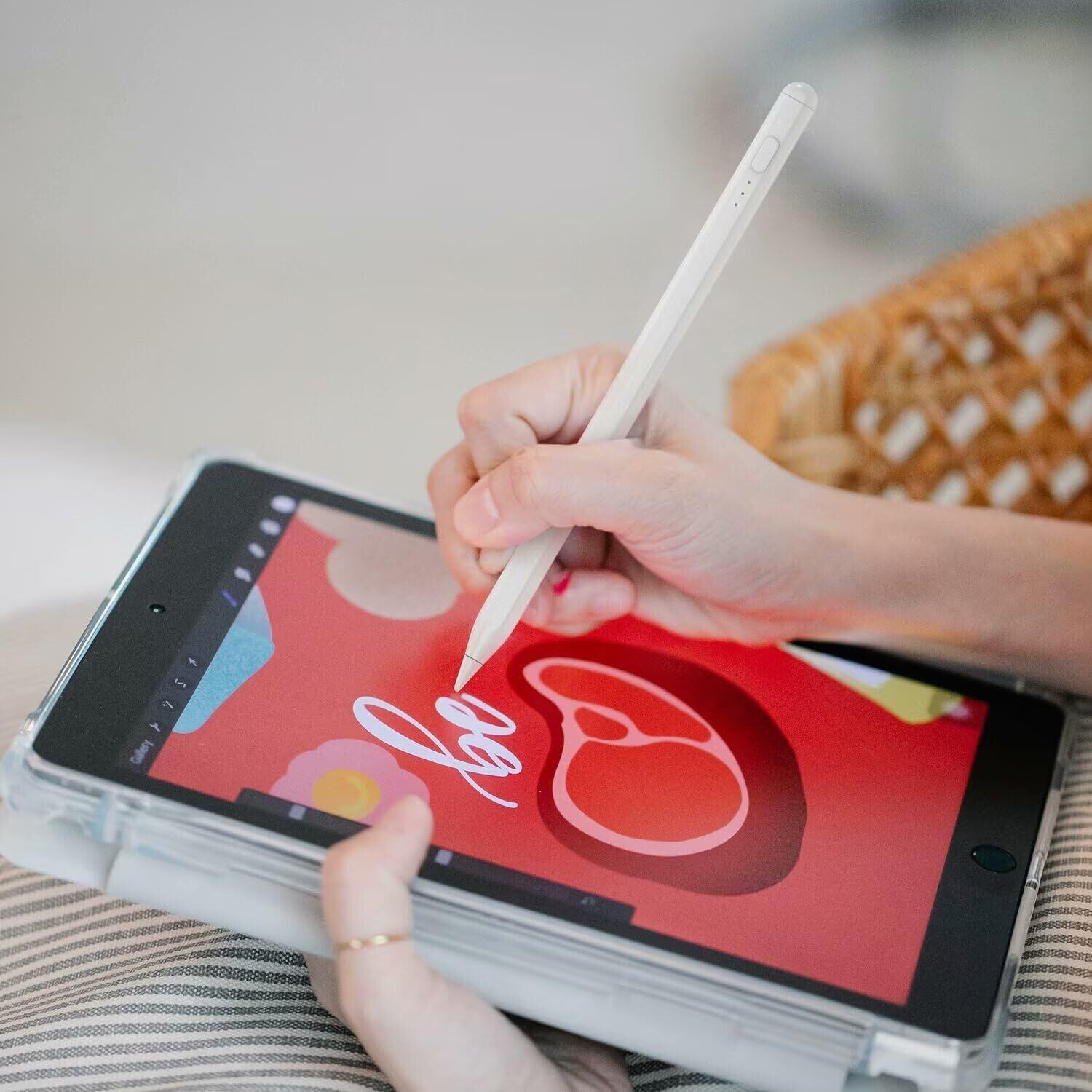 【磁気吸着機能&傾き検知機能】スタイラスペン本体にはマグネットをつけます。iPadProに乗せることもできます。しかし乗せるときは充電できないのでご注意ください。また、本製品は傾き検知も対応でき、普通の鉛筆のようにペンを傾けることで線の太さを変えることが可能です。