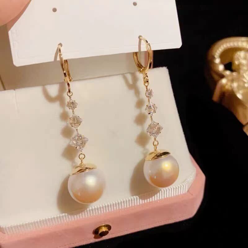 VICAKERロングパールピアス レディース 人気 金属アレルギー対応 リング ピアス 18金アクセサリー ジルコニア つけっぱなし ゆれる 大人揺れるイヤリング 耳飾り