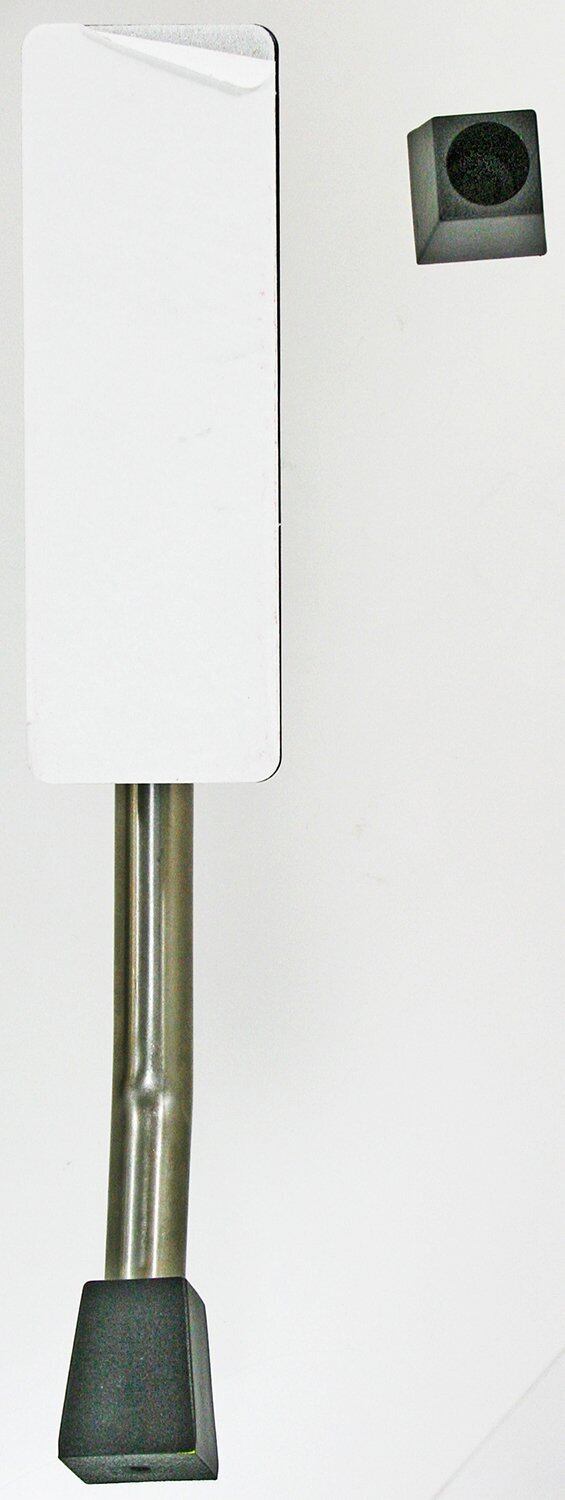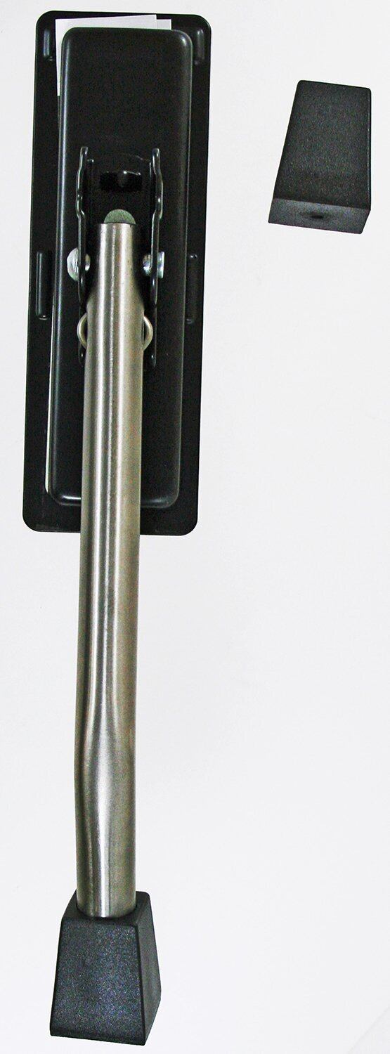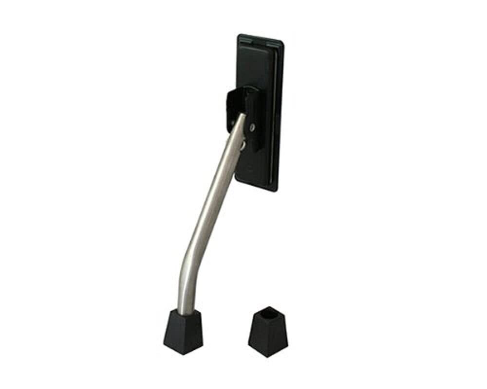 足で押し下げるだけ、お好みの位置で止まるドアストッパー。色は黒です。