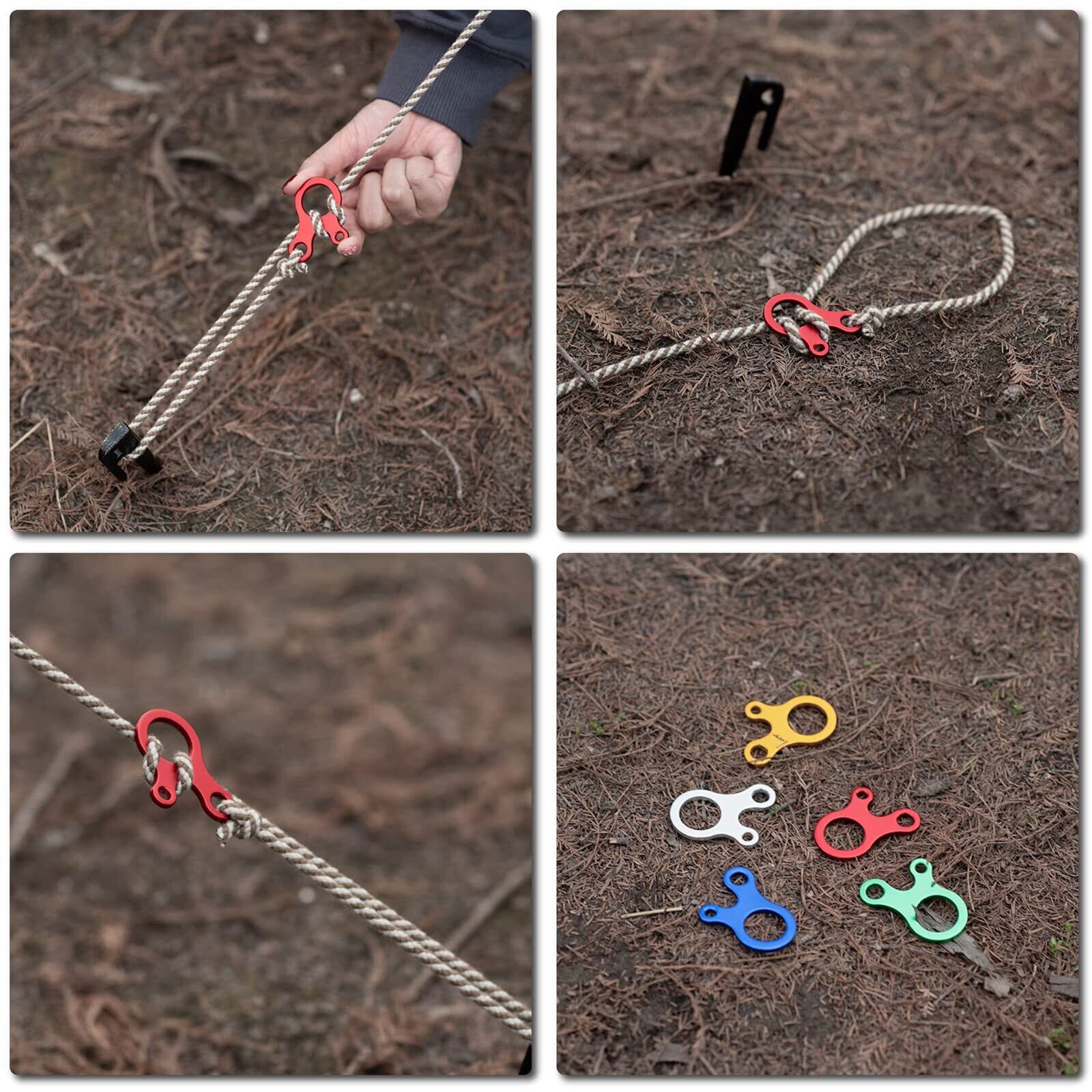 【応用】- ガイラインライナーはロープや小物をしっかり固定できます。テント、タープ、天幕、ハンモック、遮光シェード、設営などに最適です