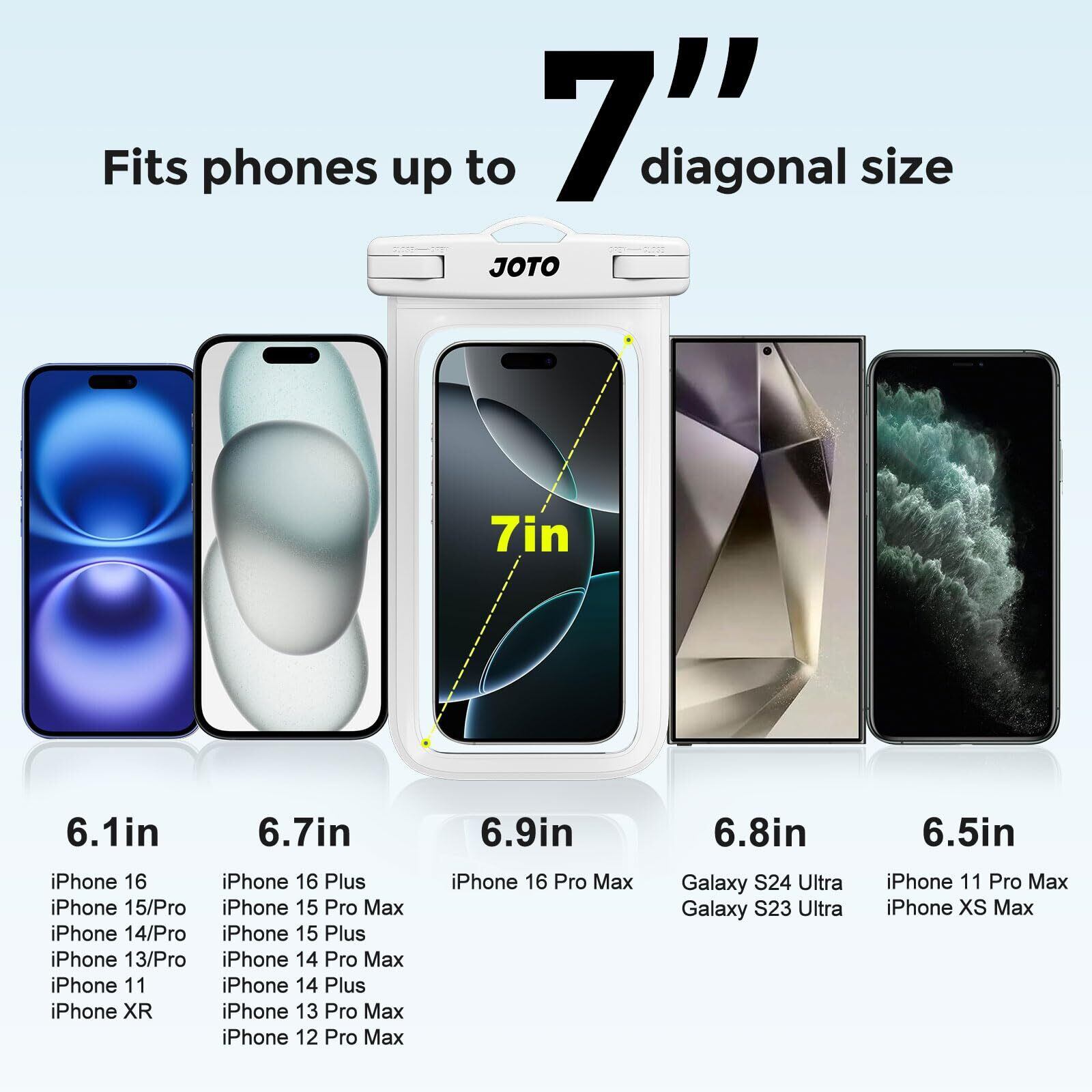 JOTO 防水スマホケース IPX8認定 お風呂 海 プール 温泉 首掛け式 ドライバッグ 登山 お釣り時の防塵・防水対策 最大7.0”スマホに対応可能 適用端末:iPhone 17 16 15 14 13 12 Mini Pro Max Galaxy S24 Xiaomi Pixel -ホワイト