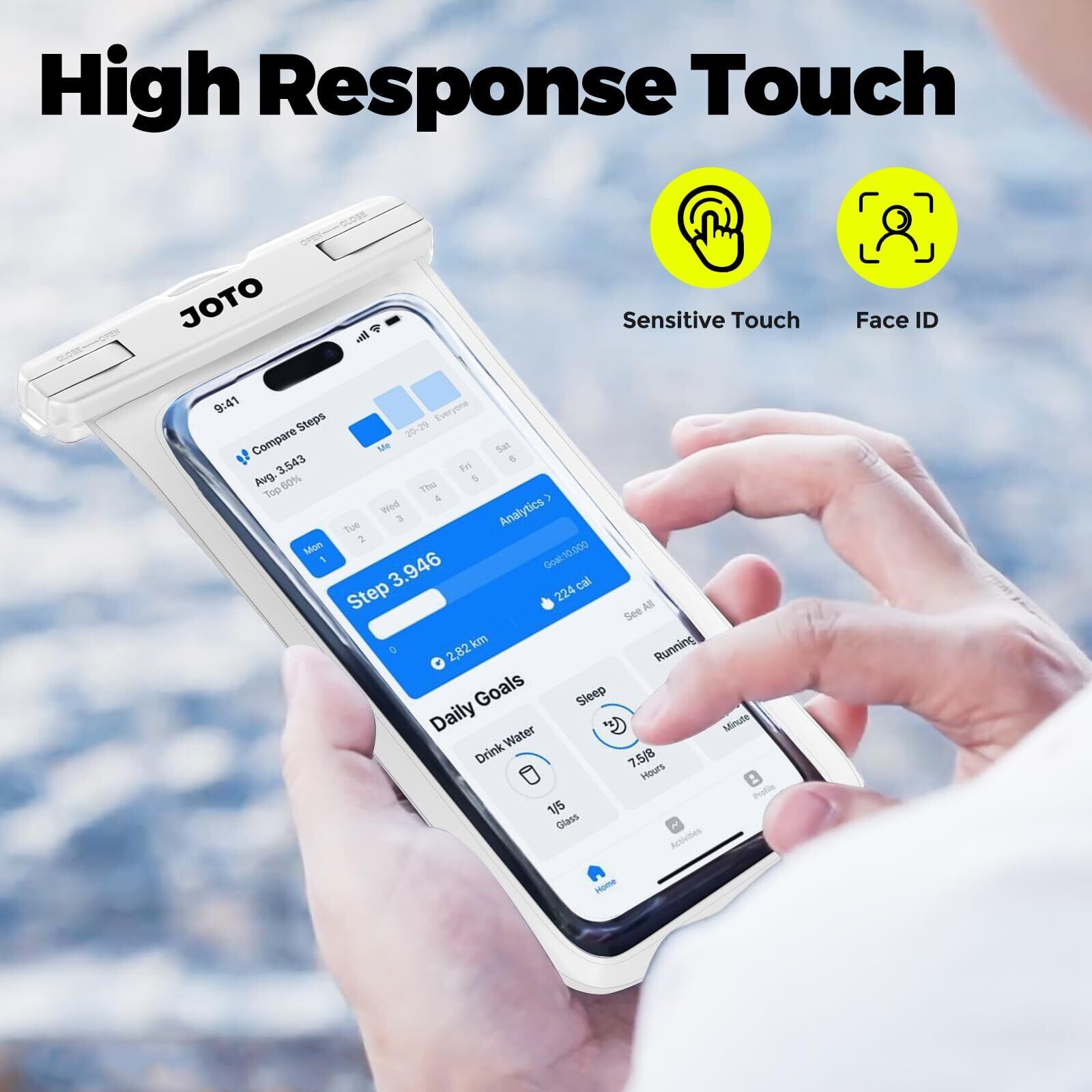 材質: 高透明度のビニール素材を採用しており、水中でも鮮明な写真や動画の撮影が可能です。高感度の防水膜によって、タッチ操作の感度を妨げることなくスムーズな操作を実現します