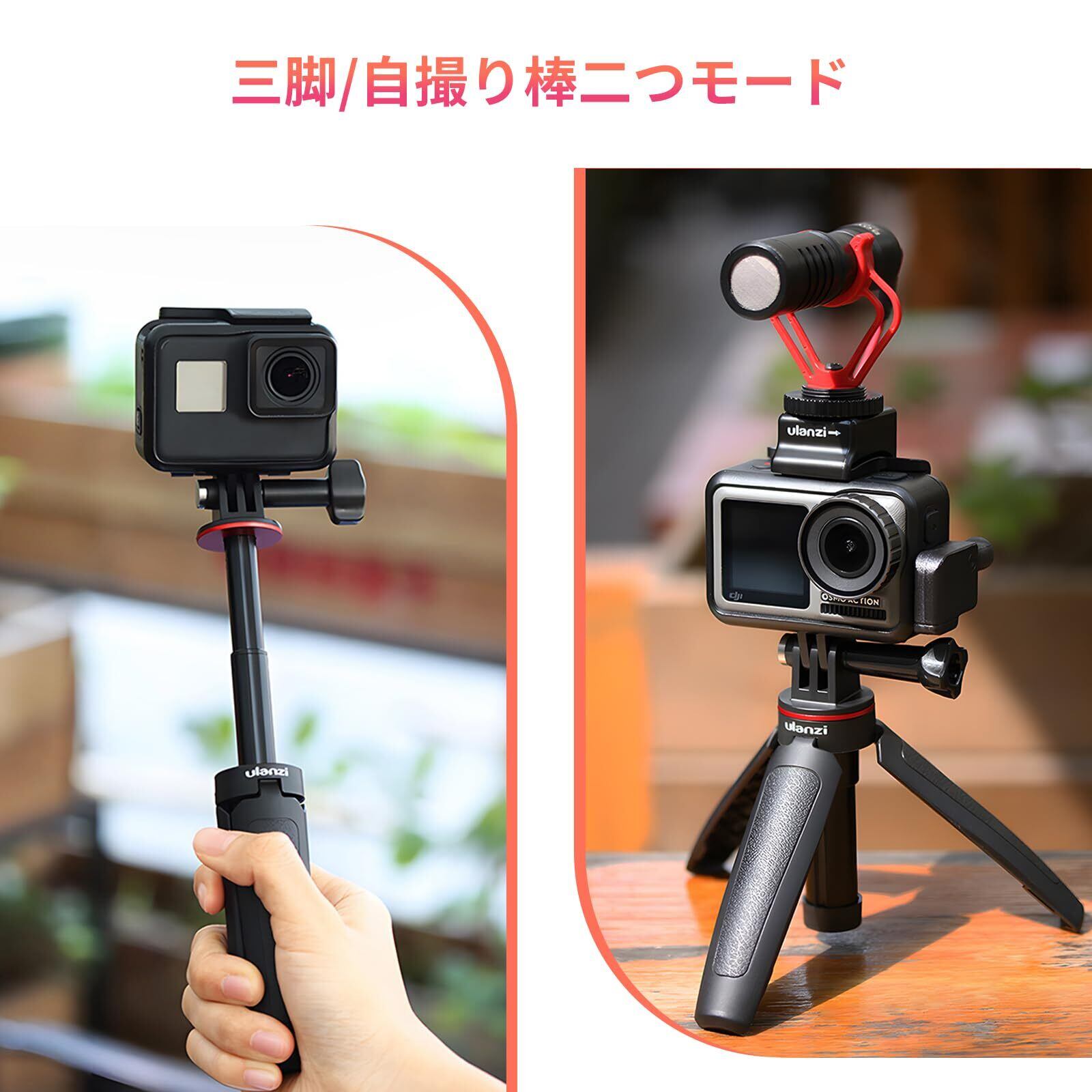 Ulanzi 自撮り棒 GoPro用 セルカ棒 3段伸縮 3way自撮り棒 伸縮一脚 三脚 ゴープロ用 DJI OSMO ACTION/OSMO POCKET用 アクションカメラ vlog アクセサリー