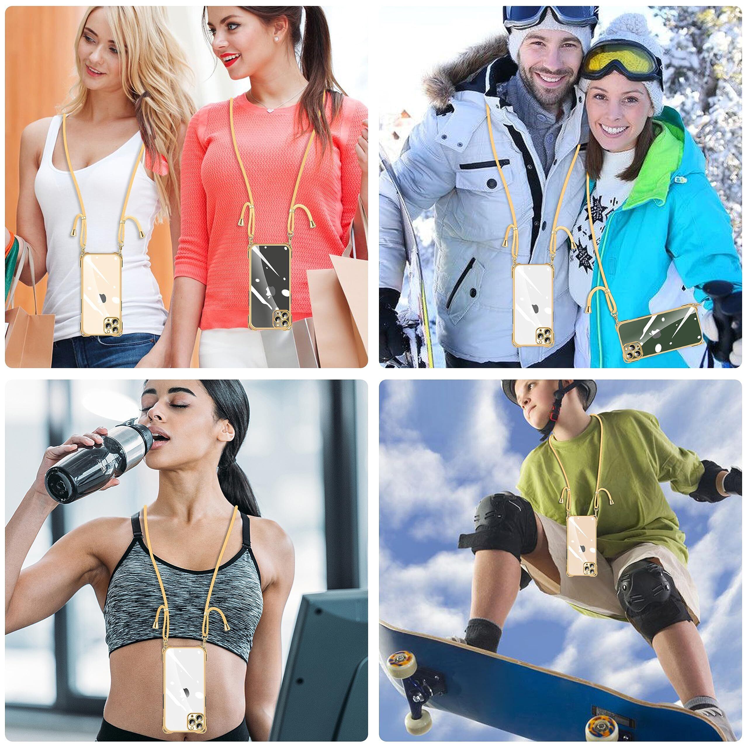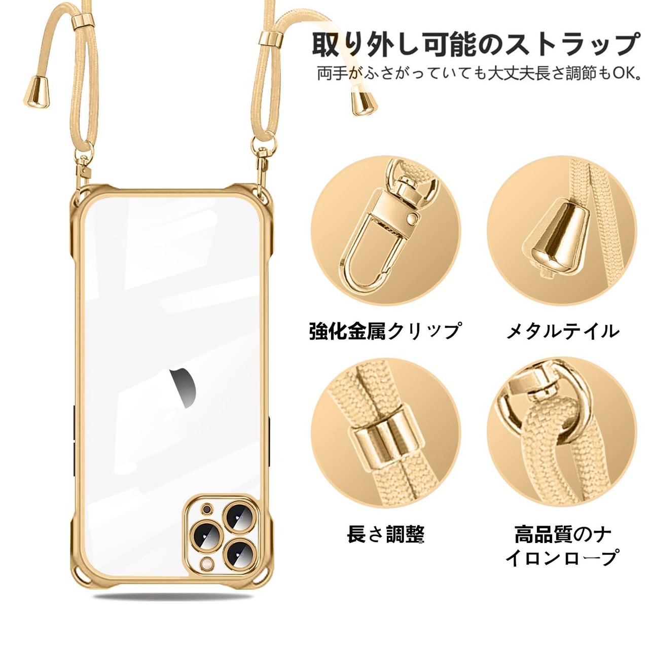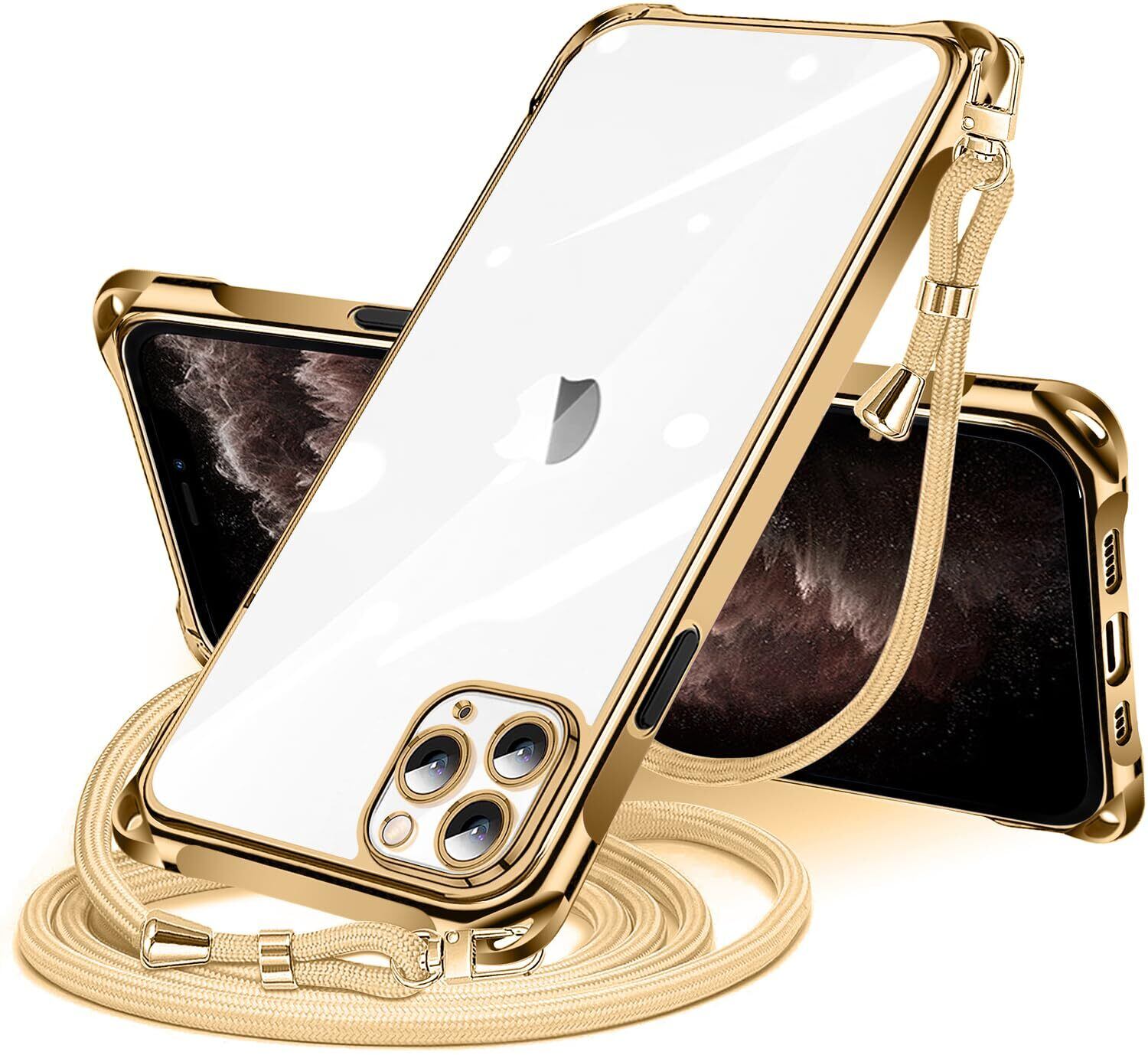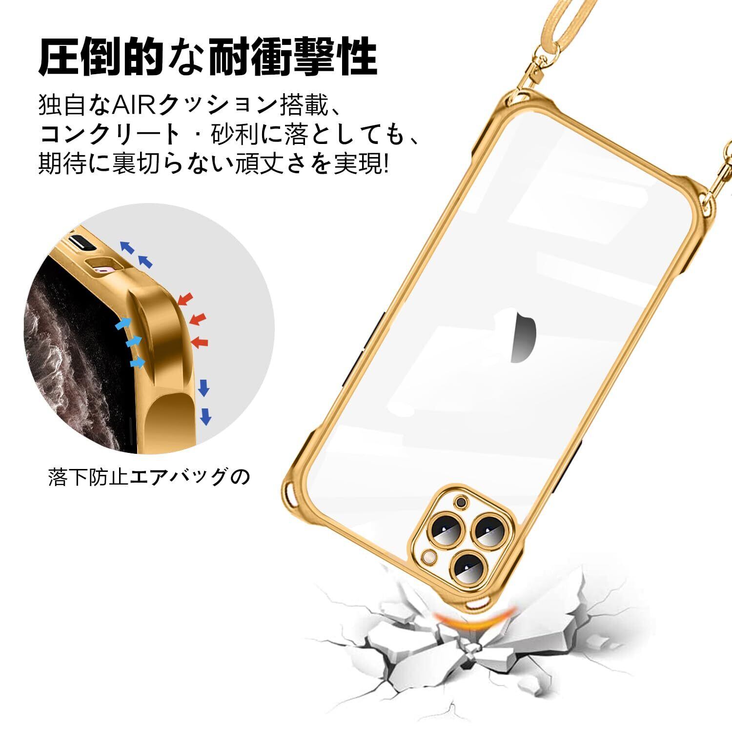 NISIILNG iPhone 11 Pro 用 ケース クリア ショルダー iphone11pro スマホケース アイフォン11Pro カバー 肩掛け 斜めかけ 縄掛けケース 透明 TPU 薄型 軽量 耐衝撃 紐付き 斜めがけ 織りストラップ付き ネックストラップ ショルダー 縦/横 2WAY 長さ調整可能 取り外し可能 落下防止 紛失防止 (ゴールド)