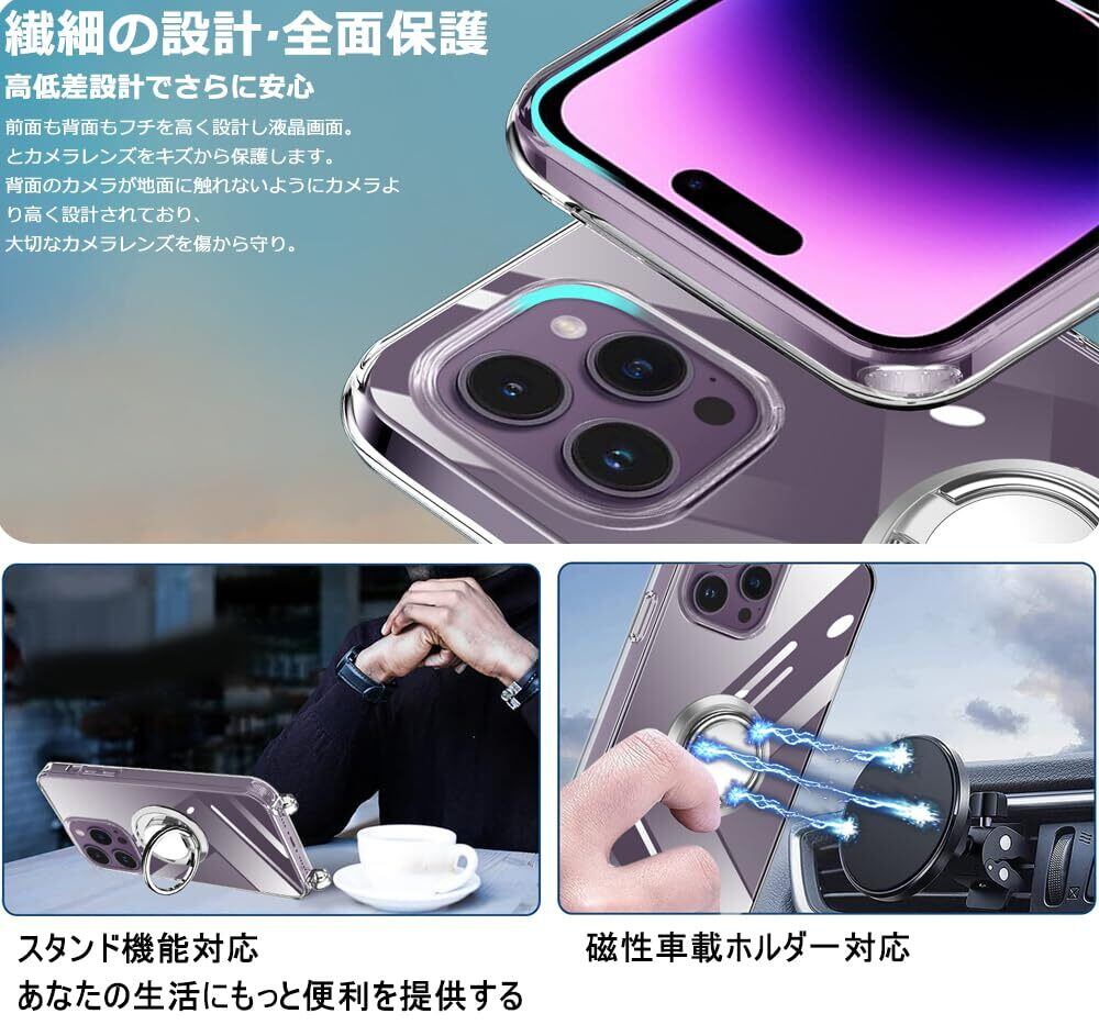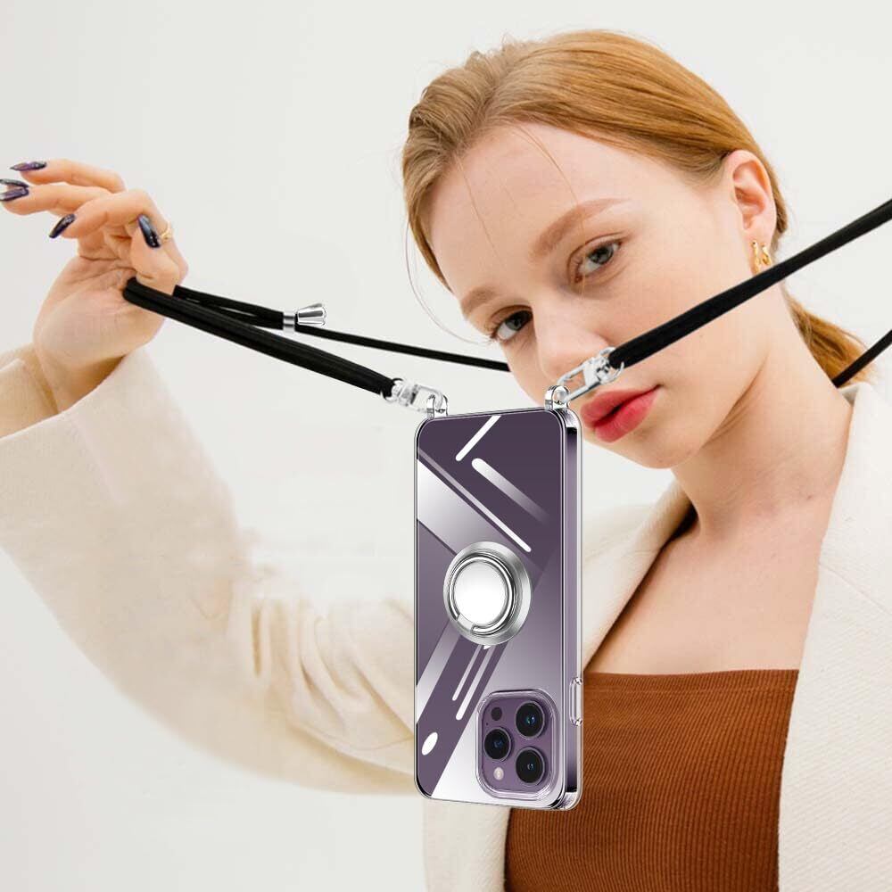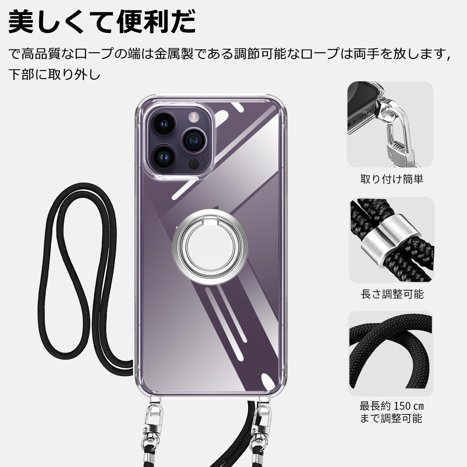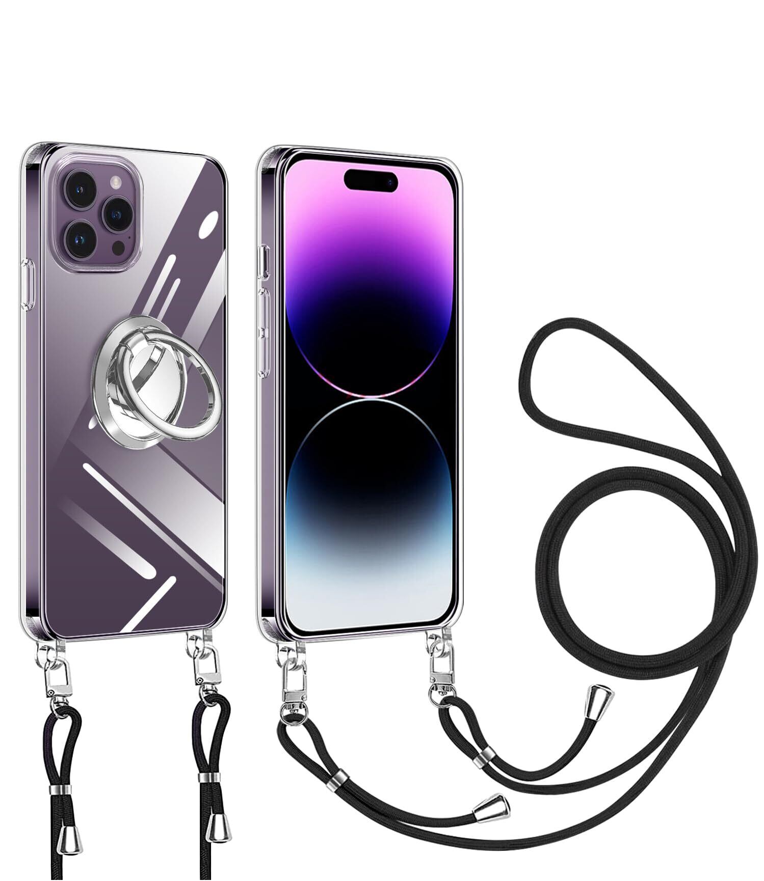 iPhone 14 Pro 用 スマホケース 多機能スタンド アイフォン14Pro カバー 肩掛け 斜めかけ 縄掛けケース 透明 PC+TPU 薄型 軽量 耐衝撃 長さ調整可能 取り外し可能 ネックストラップ ショルダー ケース 落下防止 紛失防止 (クリア)