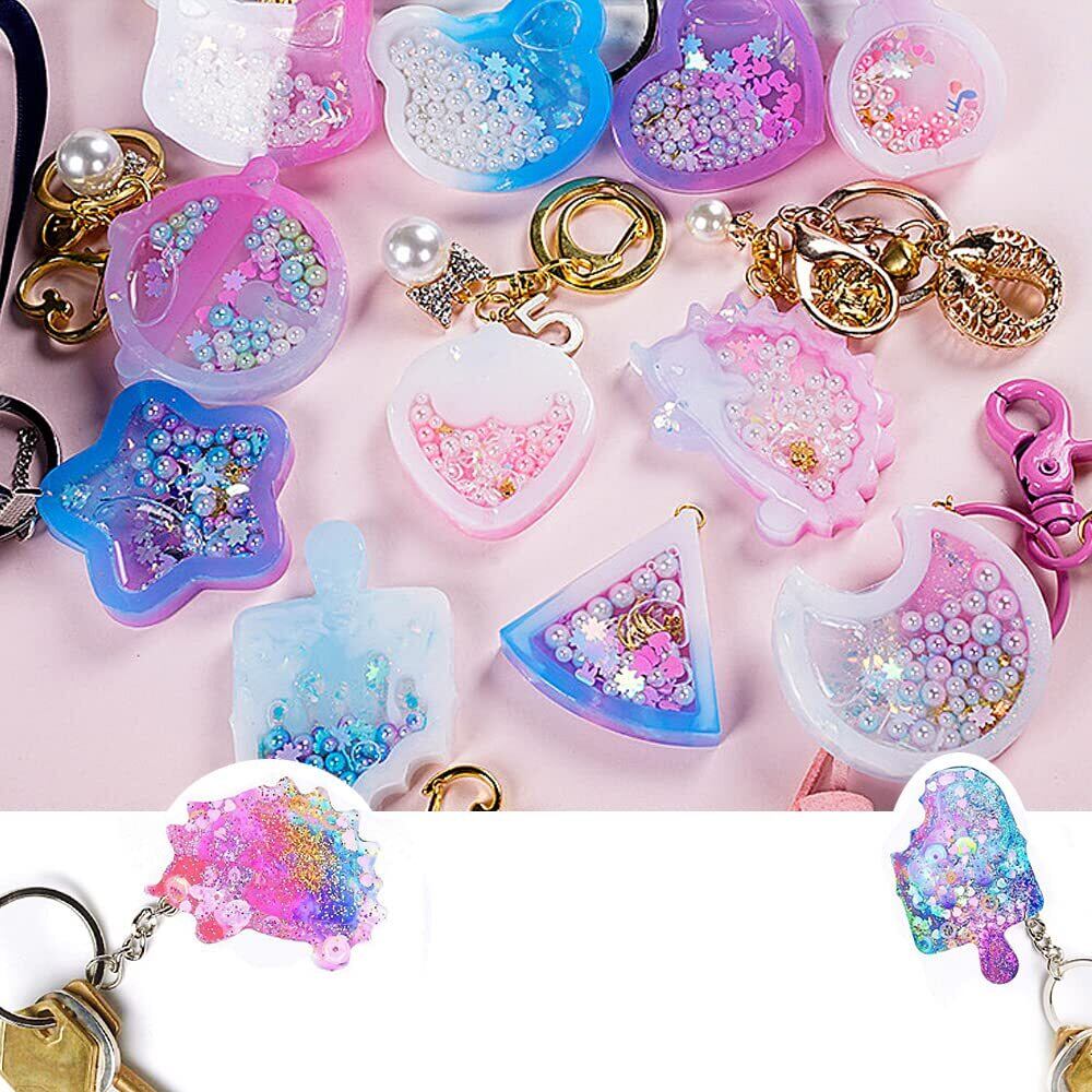 シリコンモールド 流れ砂型 12個セット PPシート3枚付き レジン型 シェイカーモールド ハート ソフトモールド 中身がシャカシャカ動く DIY手作り かわいい ペンダント アクセサリー キーホルダー レジン モールド 装飾 再利用可能
