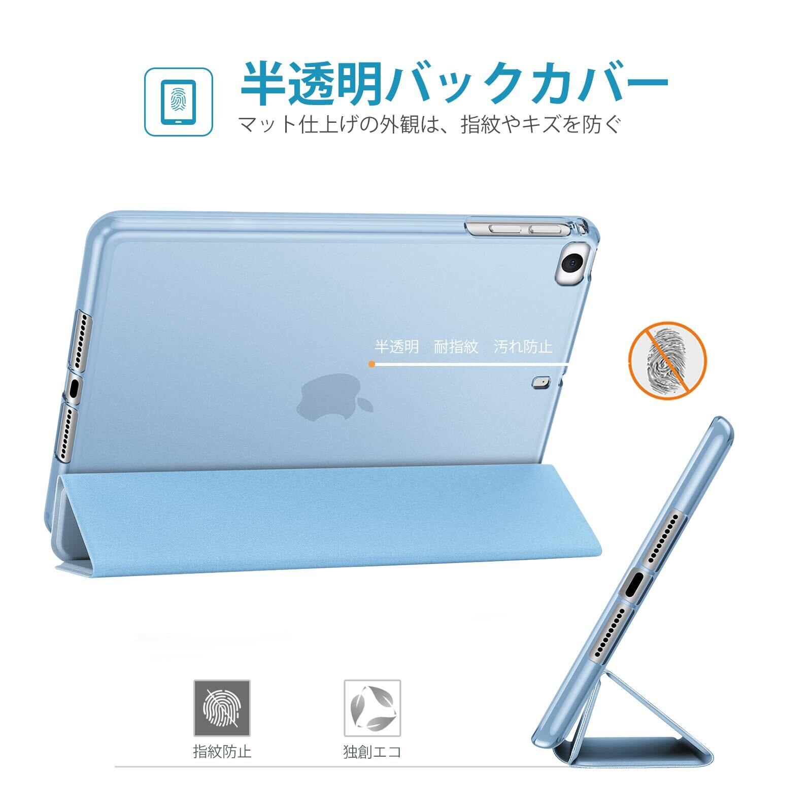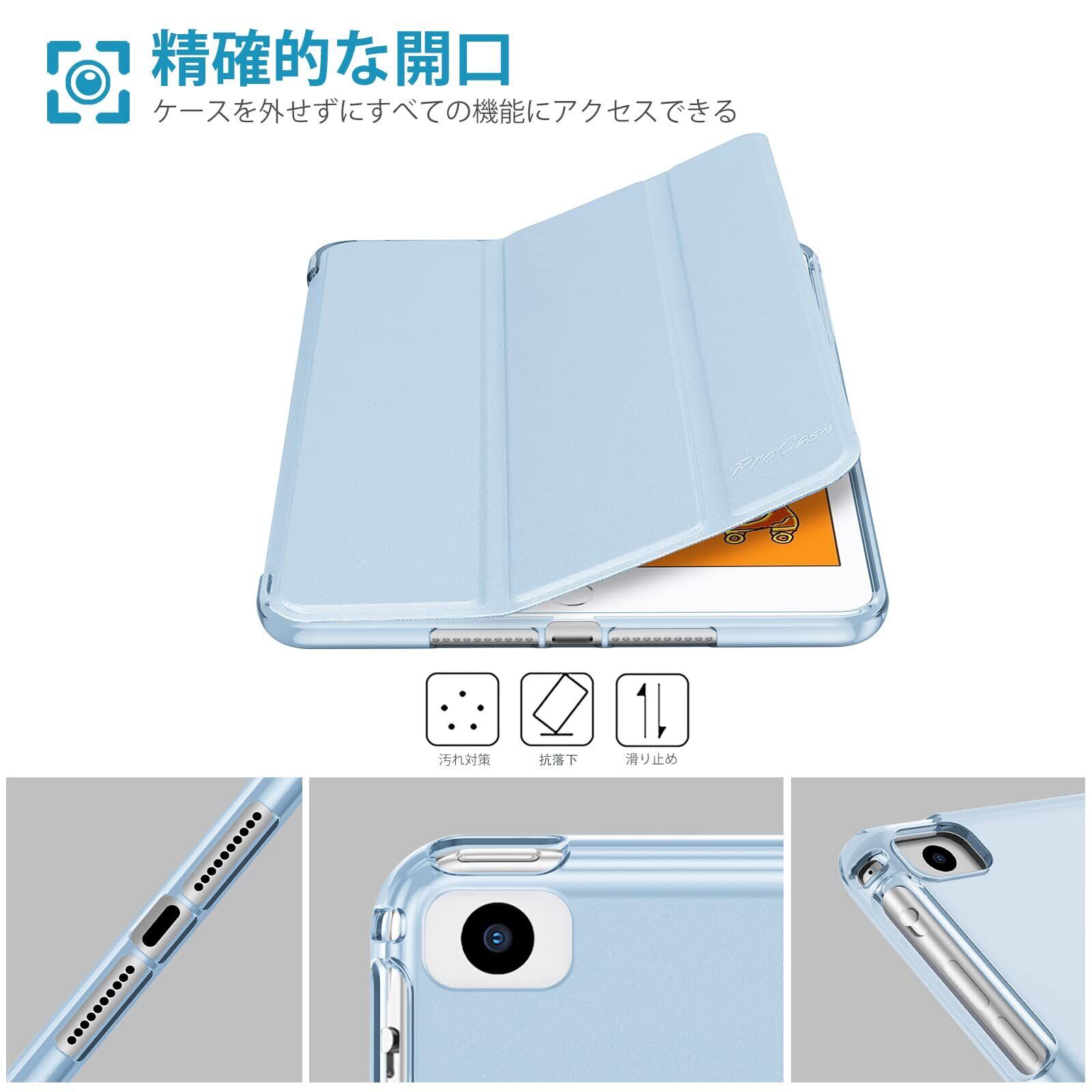 ProCase iPad Mini 5/4/3/2/1 保護ケース 三つ折り フォリオ オートスリープ/ウェイクに対応 TPUバック スマートカバー スタンド機能付き 適用端末:7.9” iPad Mini 5 (2019)/ Mini 4, Mini 1 2 3‐スカイブルー