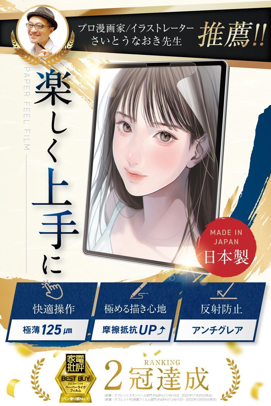 匠彩【プロ漫画家推薦】 iPad Air 第5世代 10.9 / iPad Pro 11 インチ 用 ペーパーライクフィルム フィルム 上質紙タイプ