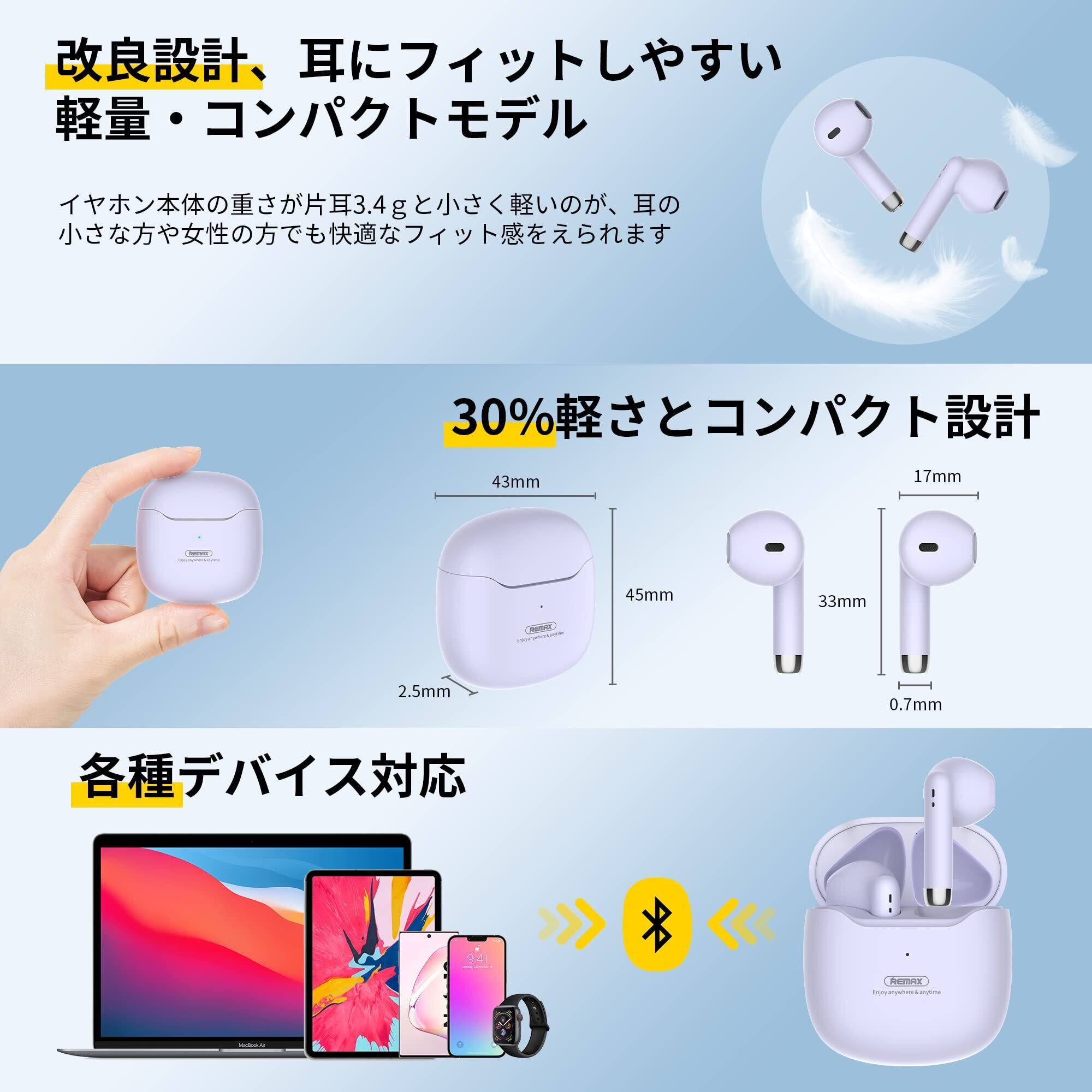 【最新型Bluetooth5.3技術】 bluetooth イヤホン ワイヤレスイヤホン bluetooth 瞬時接続 低遅延/Hi-Fi音質 AAC対応 ブルートゥースイヤホン 小型/コンパクト 35時間音楽再生 ハンズフリー通話 IPX7 Type-C充電 片耳/両耳 左右分離型イヤホン 音量調整 ビジネス/WEB会議/ZOOM/通学/通勤/仕事/スポーツ/Siri (Purple)
