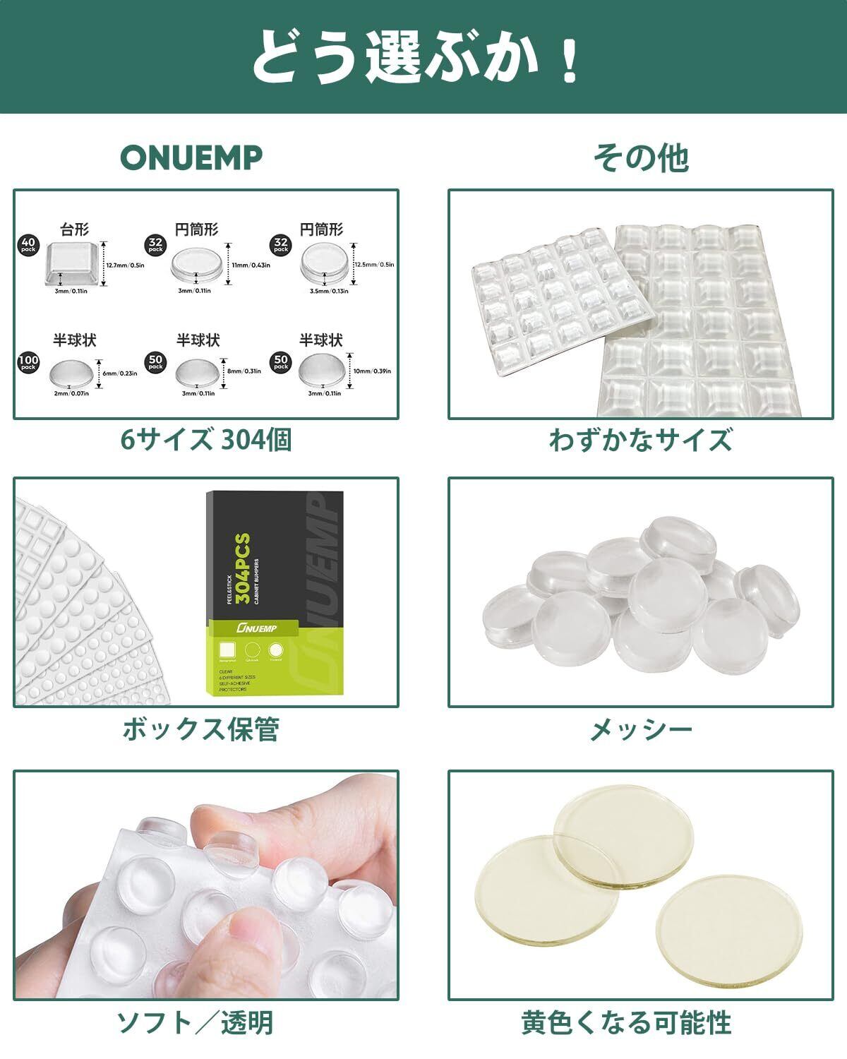 ゴム足 滑り止め シール 304粒 ONUEMP 6サイズ 戸当たり クッションゴム 粘着 ソフトクッション 透明・緩衝・防振・滑り止・キズ防止 食器棚粘着 半球形 丸型 角型ゴムクッション…