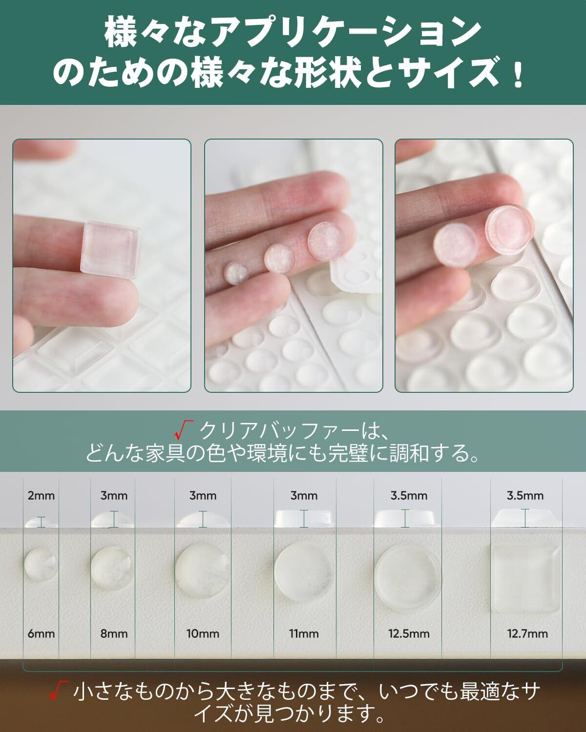 「緩衝衝撃音」 伸縮性に優れたソフトクッション 透明 、大きな圧力に耐え、一度加えると確実に止まり、引っかき音を最大40%低減します。大小様々なサイズが大容量で本当に満足です。クッション性も問題なく普通に使用出来ます。
