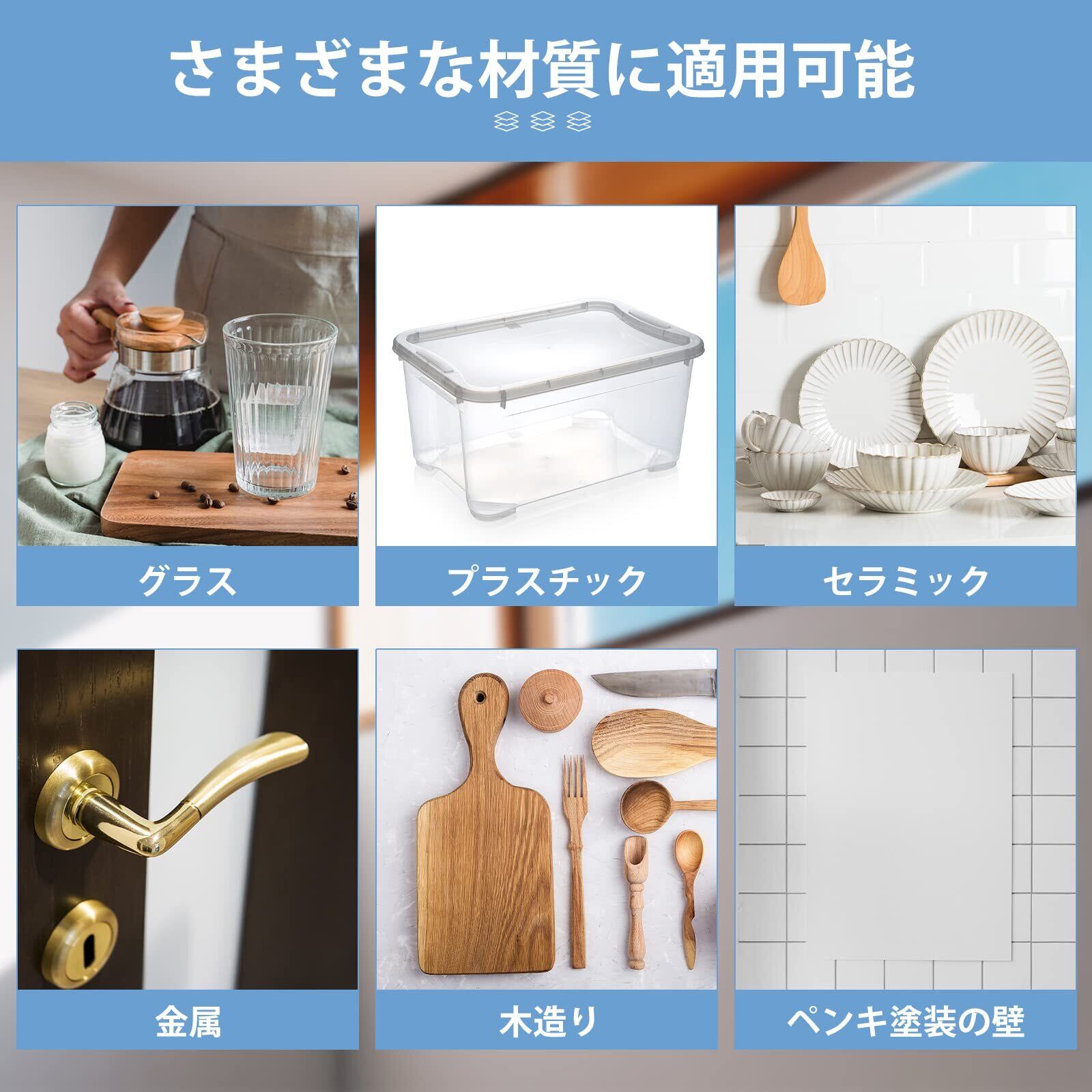 「使いやすい」切れ目のないパッドで簡単に剥がして貼り付けます。強い自己粘着性で、はがれにくく、家具などに跡やのりを残せずに貼り付けてご使用できます。耐摩耗性に優れて弾力性が良いです。「あわせ易い透明カラー」水滴のような透明な色で、何の色に合わせてもオッケーです。お部屋の元のデザインを邪魔せずにお使いいただけます。