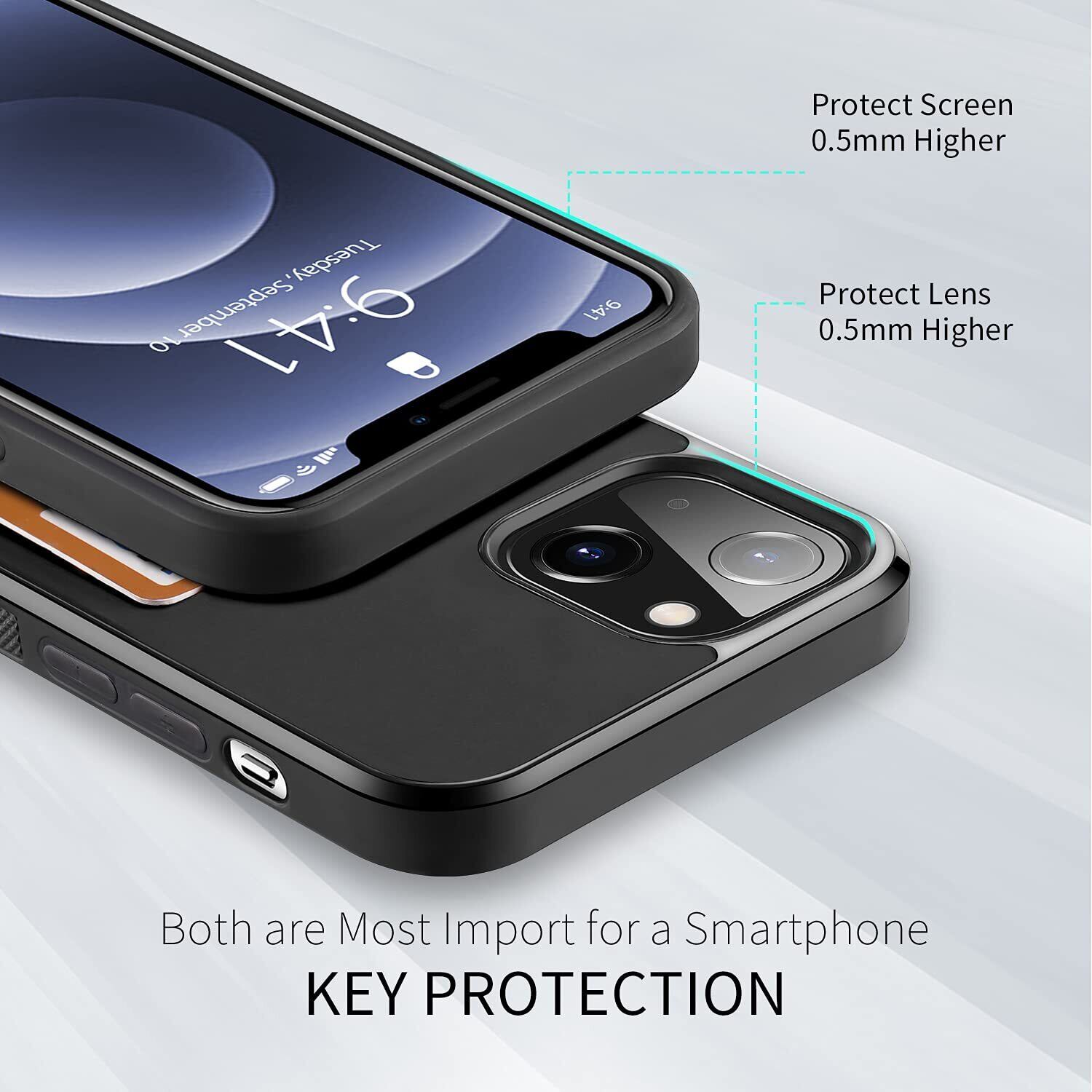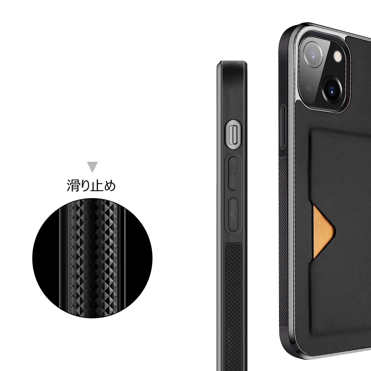 【背面カード収納付】 iPhone 13 mini ケース 上質な手触り カバー 耐衝撃 軽量 薄い ICカード収納 OWLGuardian スマホケース (ブラック)