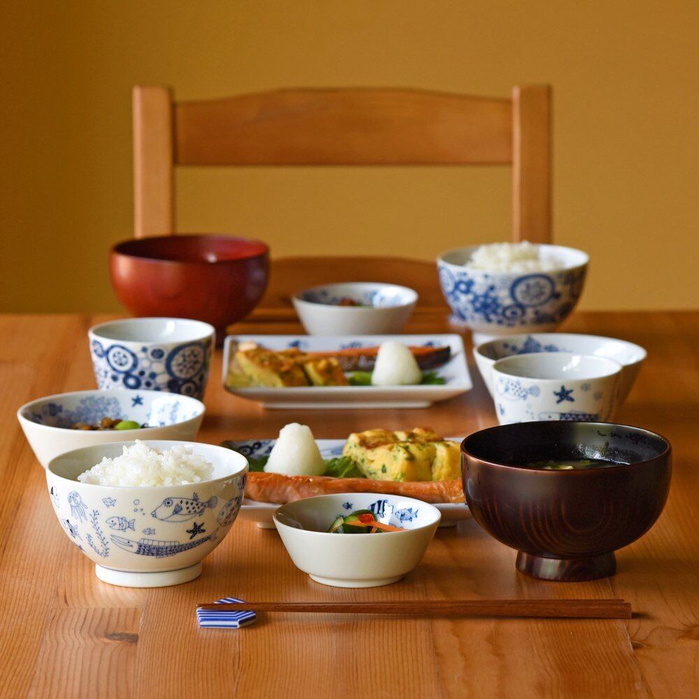 natural69 【 波佐見焼 】 cocomarine お茶わん 魚の群れ / ナチュラル69 はさみ焼き 食器 ココマリン くらわんか碗 ライスボウル 電子レンジ 食洗機対応 日本製 おしゃれ かわいい 北欧 和食器 陶磁器 プレゼント ギフト 新築祝 結婚祝 内祝 ナチュラルロック