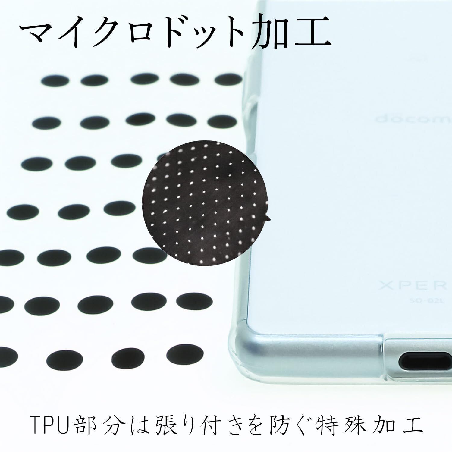 ケース背面のマイクロドット加工により、にじみやグレア現象を防ぎます。