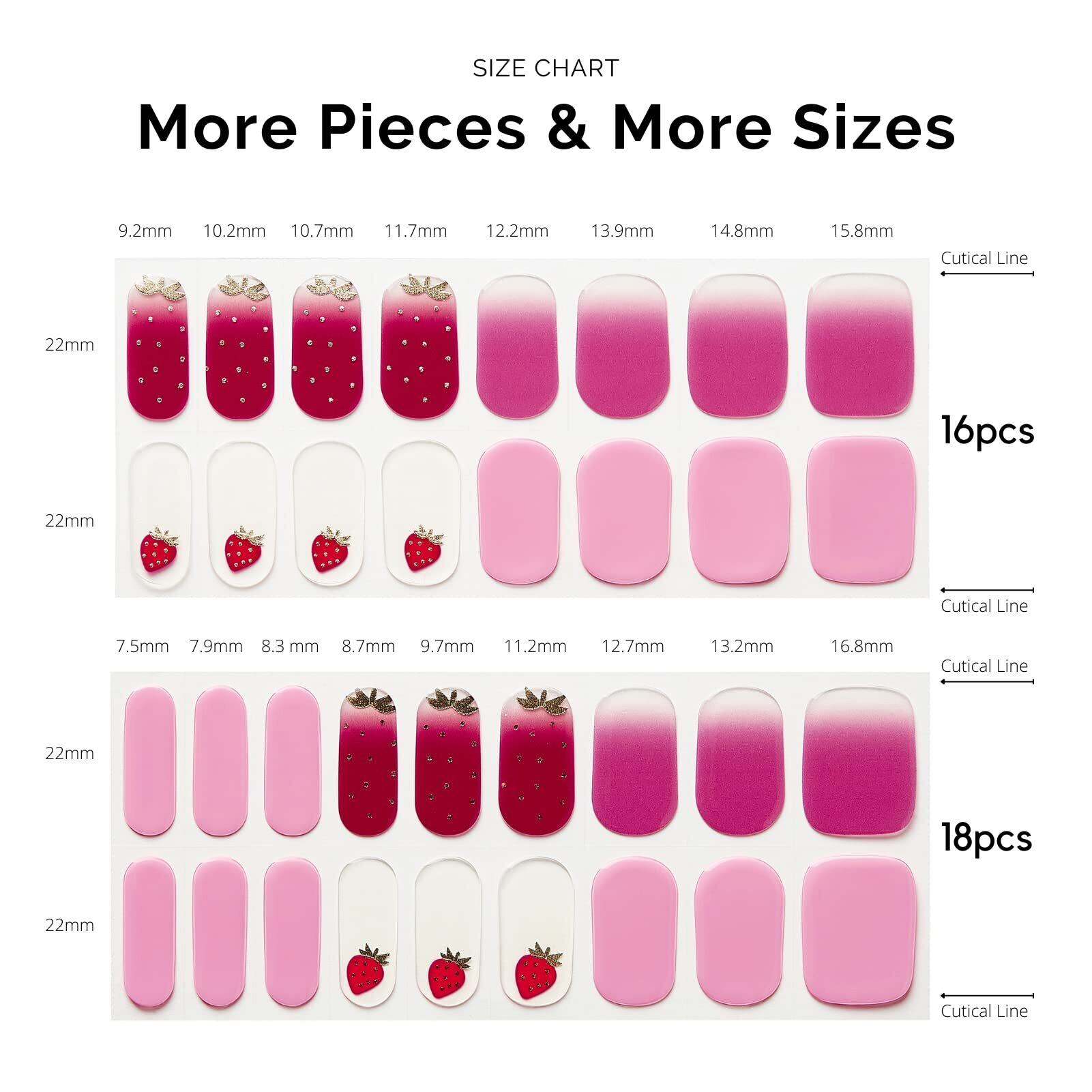 【1つパック中のジェルネイルシールの数が最多!】 - Nailogジェルネイルシール34枚は 17 種類のサイズがあり、自分の爪にぴったりのサイズを簡単に見つけることができます。 - 新しいサイド ラインは、爪の形にさらにフィットし、シームレスな接着を実現します。
