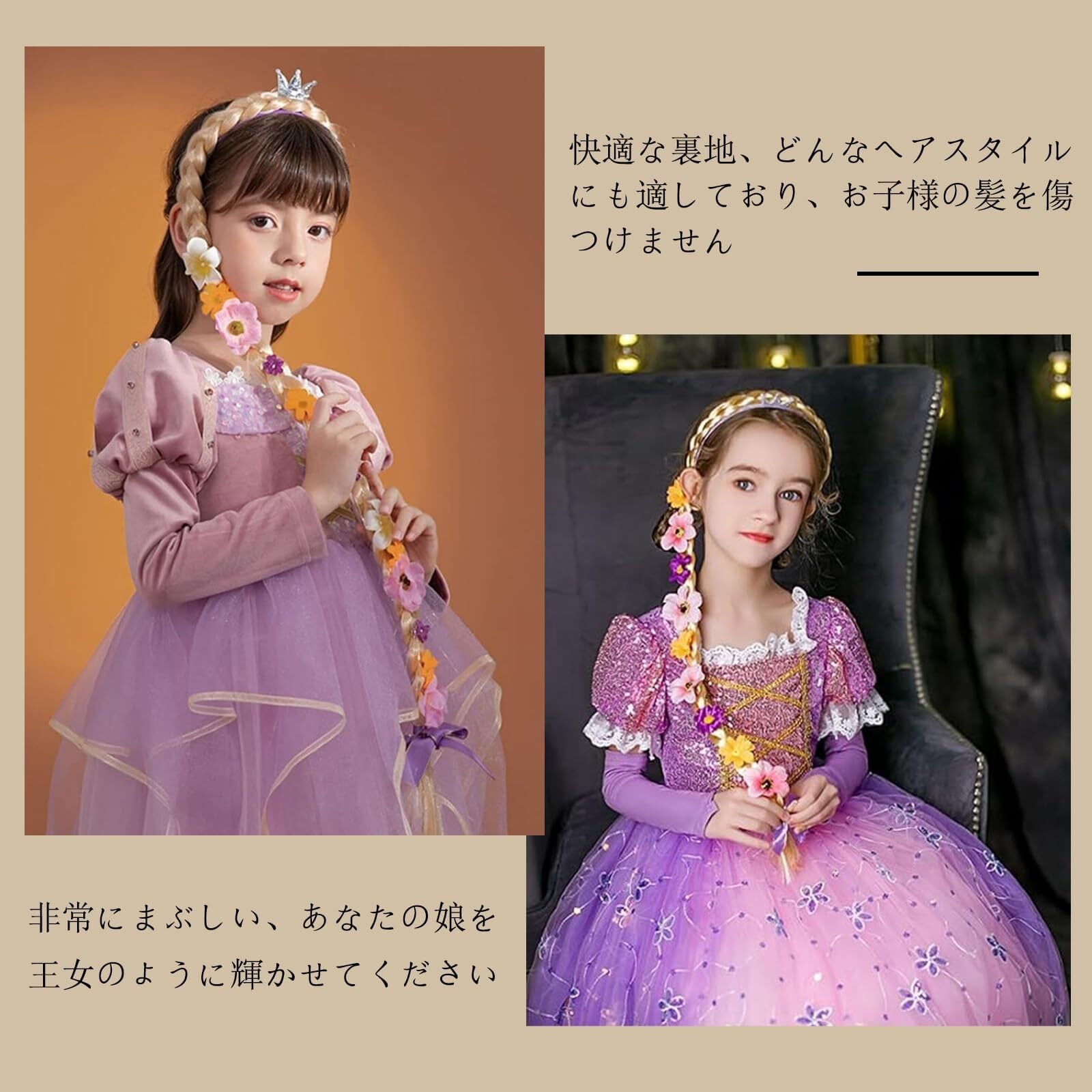 【プレゼントにおすすめ】:ハロウィン、ひな祭り、ラプンツェルになりたいというお子様に、プリンセスの夢を叶えてあげてください。 かわいくておしゃれ、誕生日プレゼントに人気です。