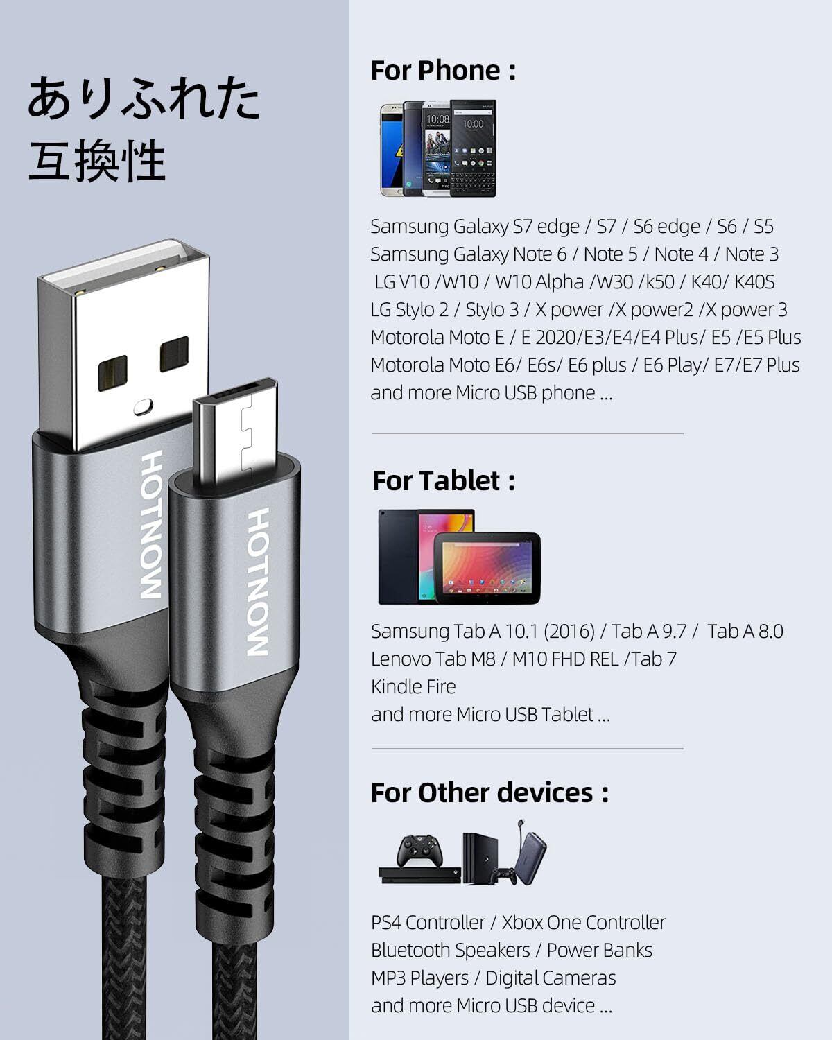 HOTNOW Micro USBケーブル 1m 2本、100cm Android充電器ケーブルデータ同期およびGalaxy S6 S7、HTC、LG、Sony、PS4、MP3、タブレットなどのマイクロデバイス用の高速充電ナイロン編組コード