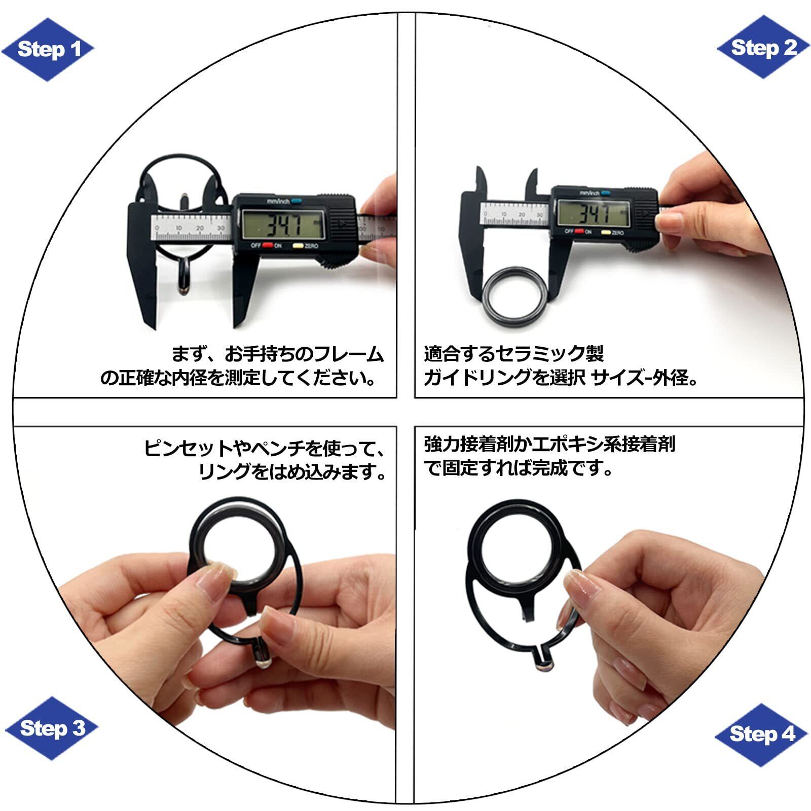 【セラミックス素材】製品全体がセラミックで作られ、淡水や海水の環境にも簡単に対応できます。注意:セラミックリングを地面に落とすと、セラミックが割れることがありますので、ご注意ください。多種のサイズを取り揃えておりますので、お手持ちのロッドガイドの内径を正確に測り、適切なサイズをお選びください。