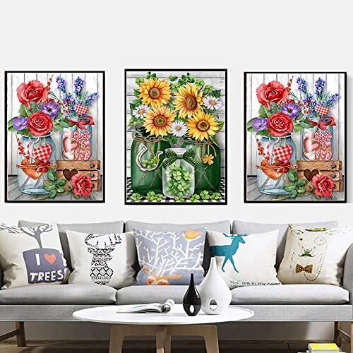 サムコス ダイヤモンドの絵画 ダイヤモンドアート キット 2個セット 暇つぶし おしゃれ かっこいい 全面貼り付け ハンドメイド 初心者 DIY 花 手芸キット 家の装飾 (花1)