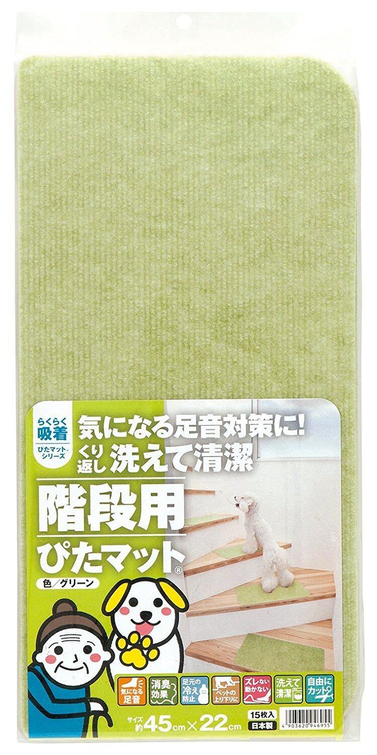 ワタナベ工業 国産タイルカーペット 吸着ぴたマット 階段用 15枚組 45X22cm グリーン
