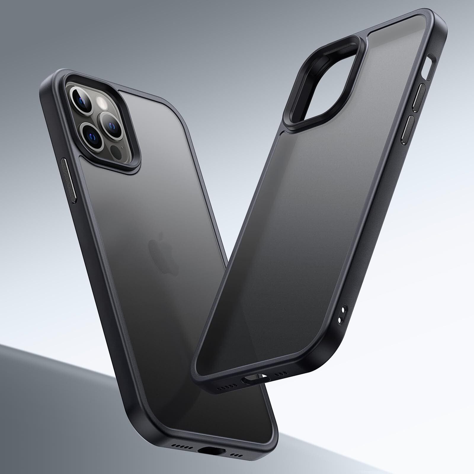 Anqrp iPhone12用 ケース iPhone12Pro ケース 半透明 耐衝撃 滑り止め 米軍MIL規格 指紋防止 マット感ケース ストラップホール付き ワイヤレス充電対応 スマホケース アイフォン12/12Pro カバー 6.1インチ マットブラック