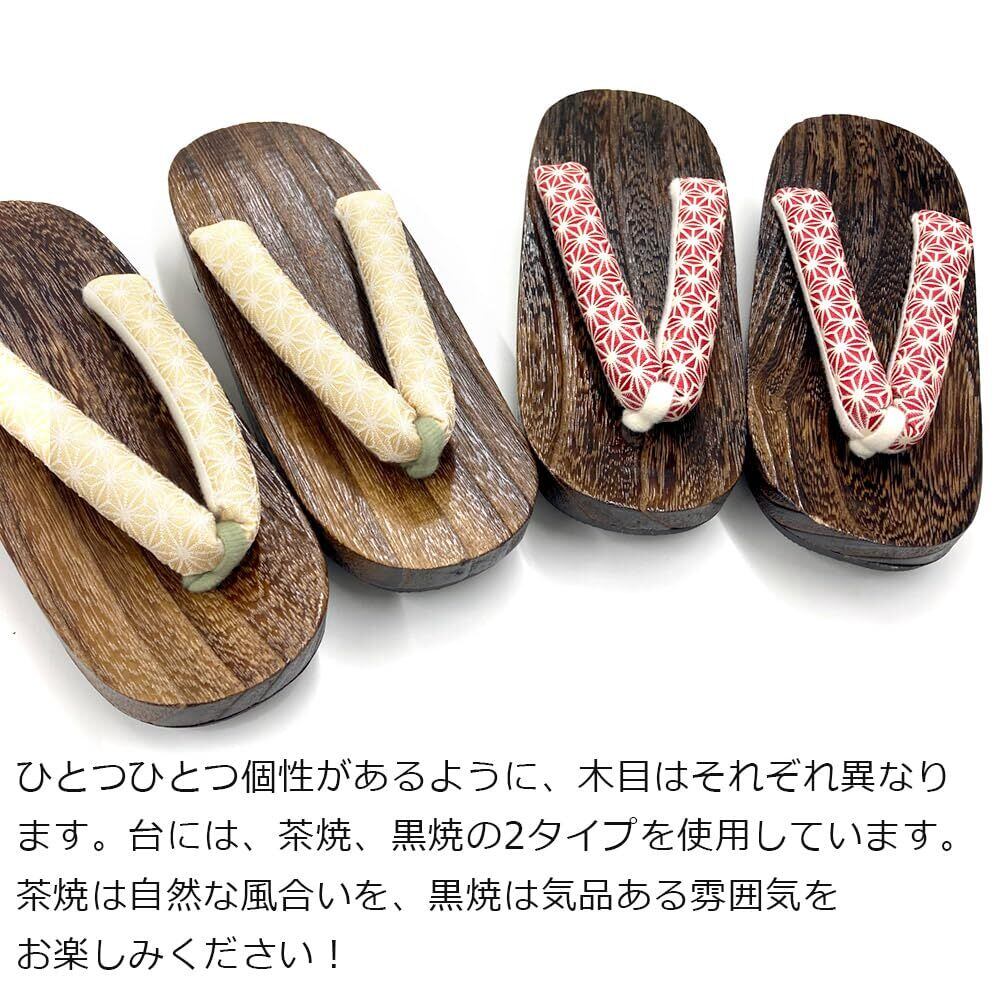 モニターの発色具合によって、色が実際のものと相違する場合がございます。鼻緒は繊維の特性により、色落ちする場合がございます。台は強い衝撃を与えると割れる場合がございますのでご注意ください。危険ですので滑りやすい場所でのご使用はお控えください。