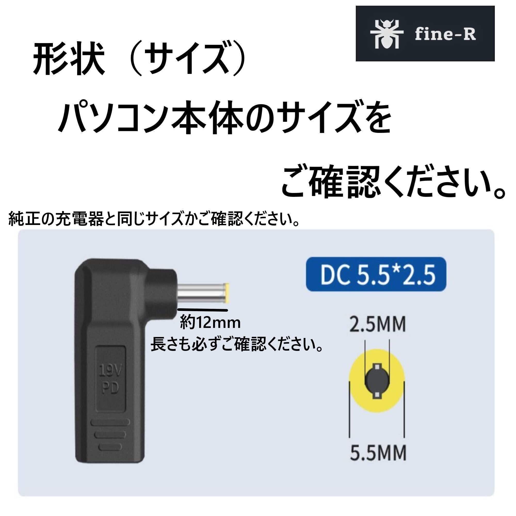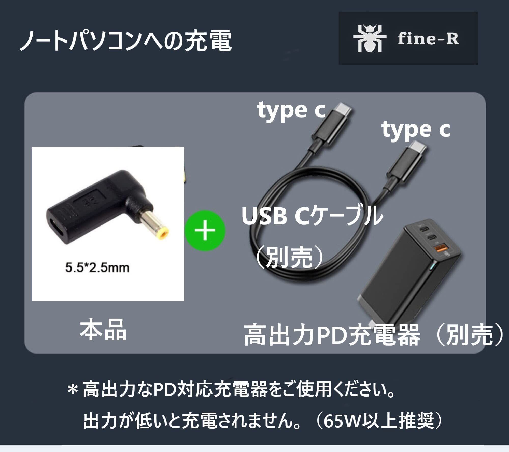 fine‑R USB-C→DC 5.5×2.5mm 変換アダプター PD充電対応 ノートPC用 L字型 オス‑メス acer 東芝 ASUS Lenovo対応 日本検品済 PL保険加入済(P5525)