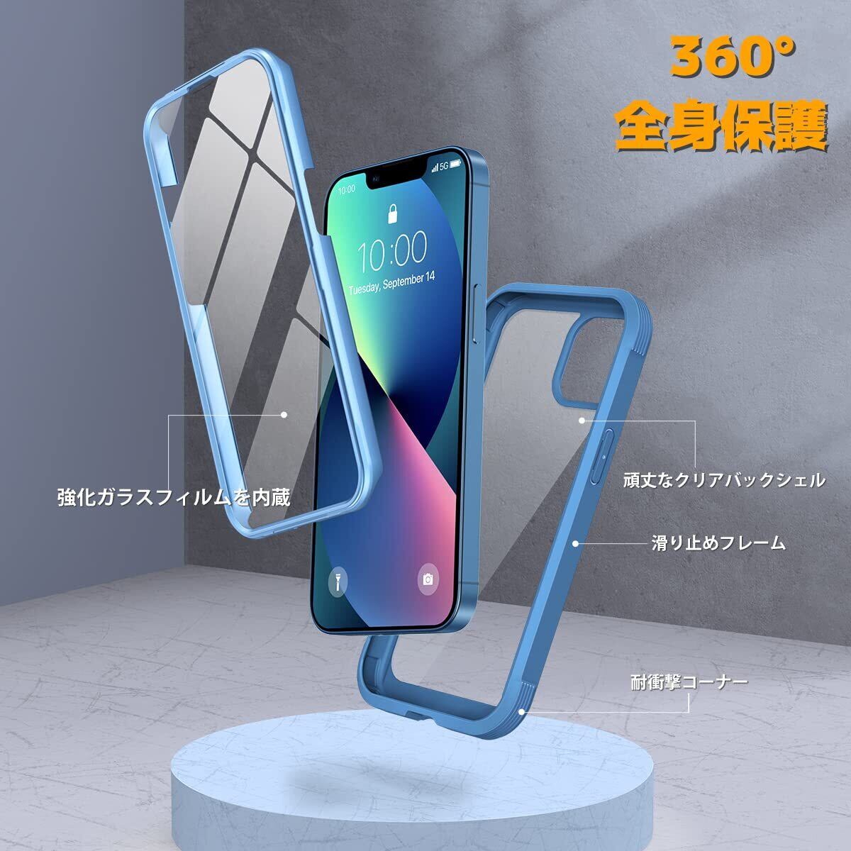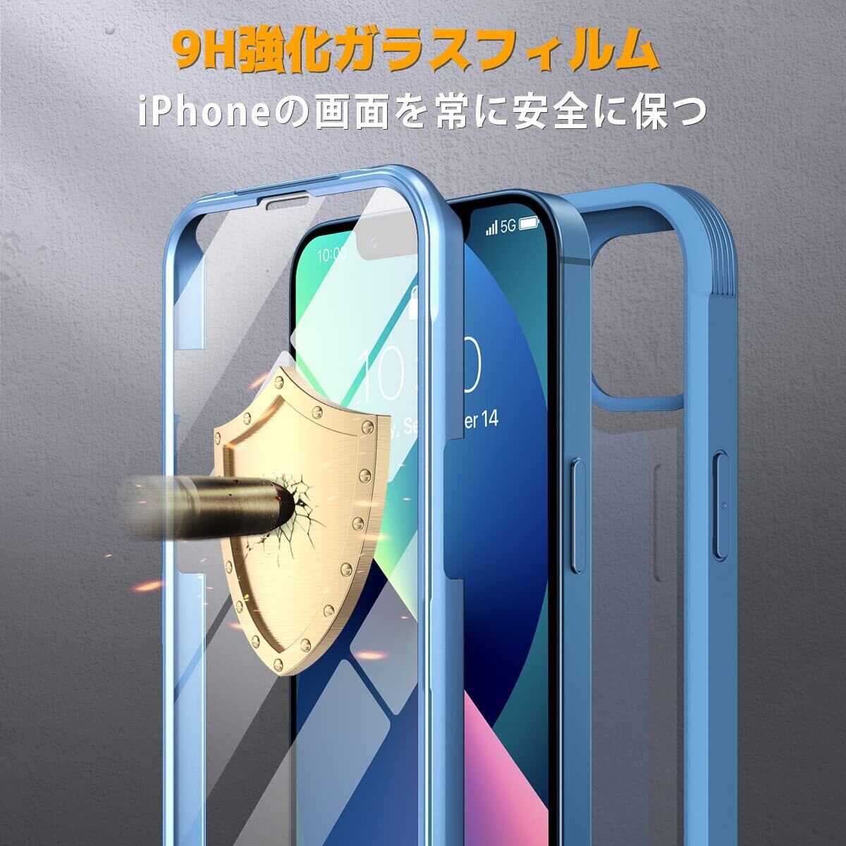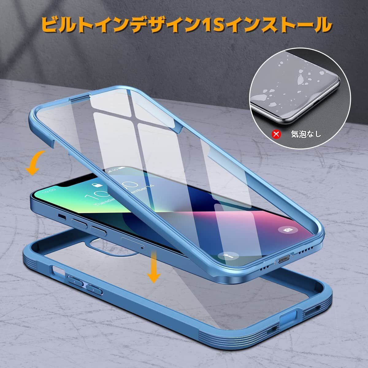 【360°フルボディ保護】9H硬度ガラス+TPUフレーム+背面PCパネルと組み合わせの三層構造、透明なリアプレートはiphone13本体背面のオリジナルカラーを表示すると同時に傷や衝撃などから守ります。