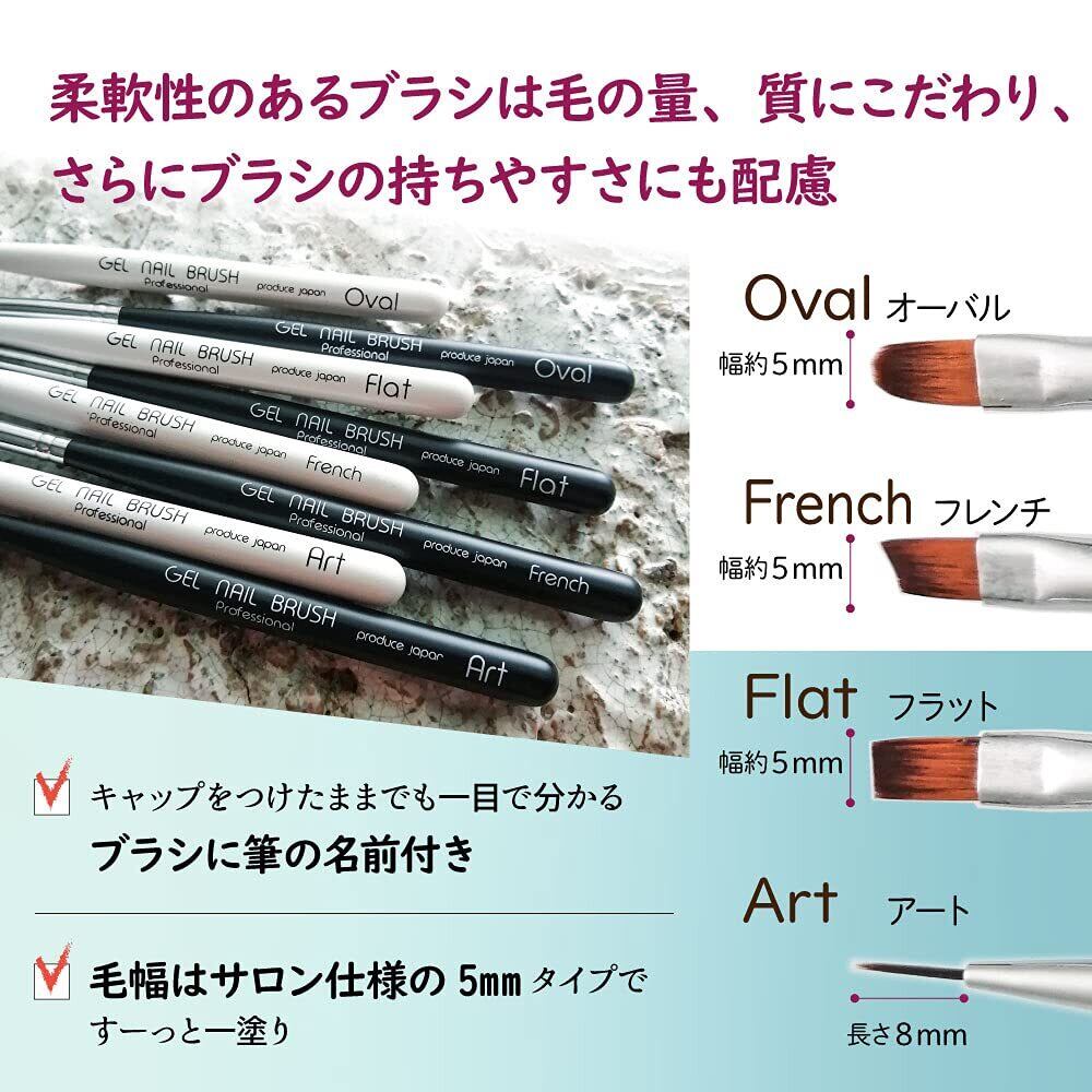 柔軟性のあるジェルブラシは毛の量、質にこだわり、さらにブラシの持ちやすさにも配慮したジェルネイル筆。 ブラシには嬉しいキャップ付き! キャップをつけたままでも一目で分かるブラシに筆の名前付き!