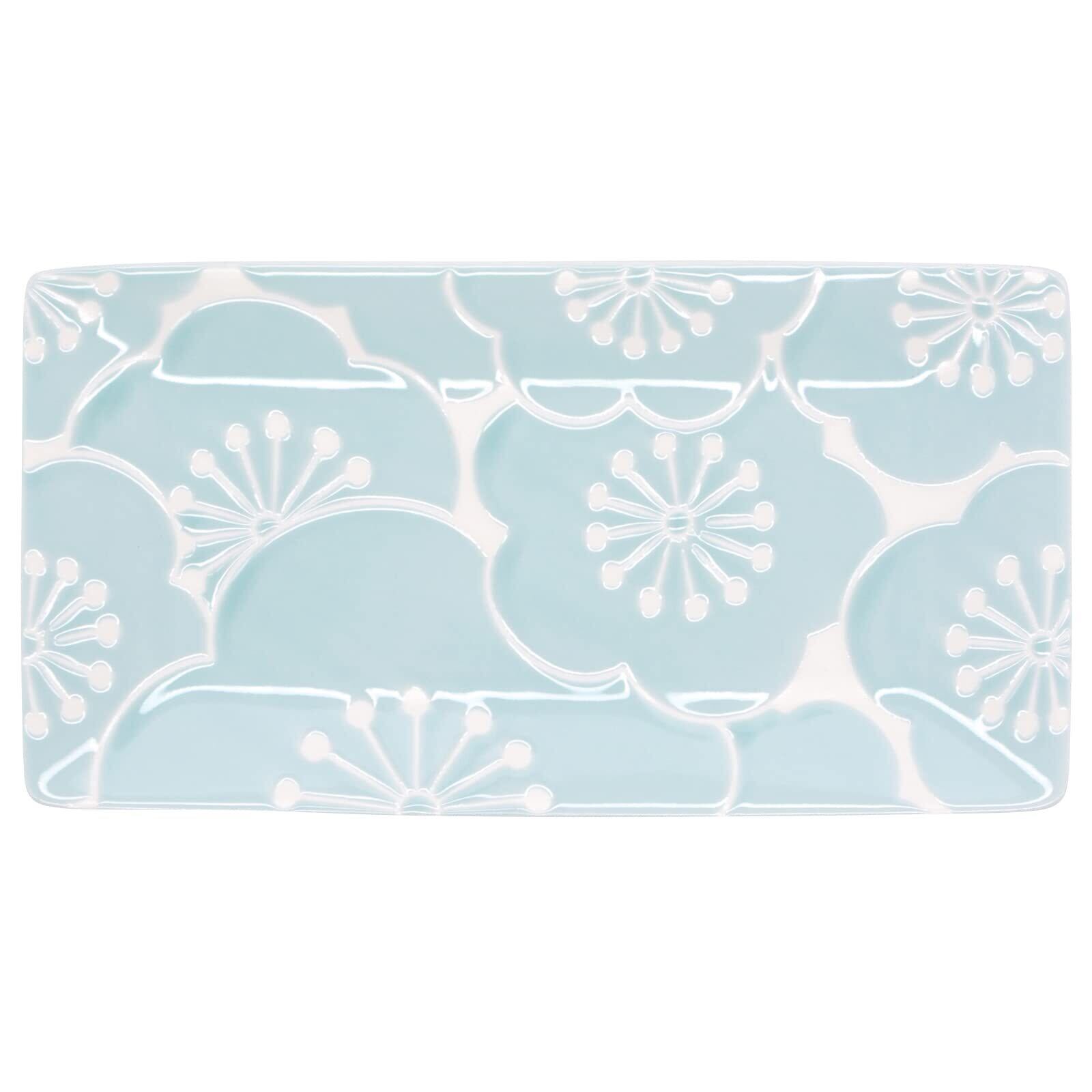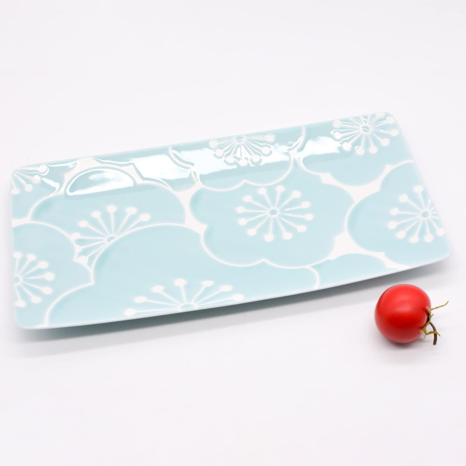 波佐見焼 「 はふり 」 長皿 長角皿 焼き物皿 径約25×13.5cm ブルー 梅 18087