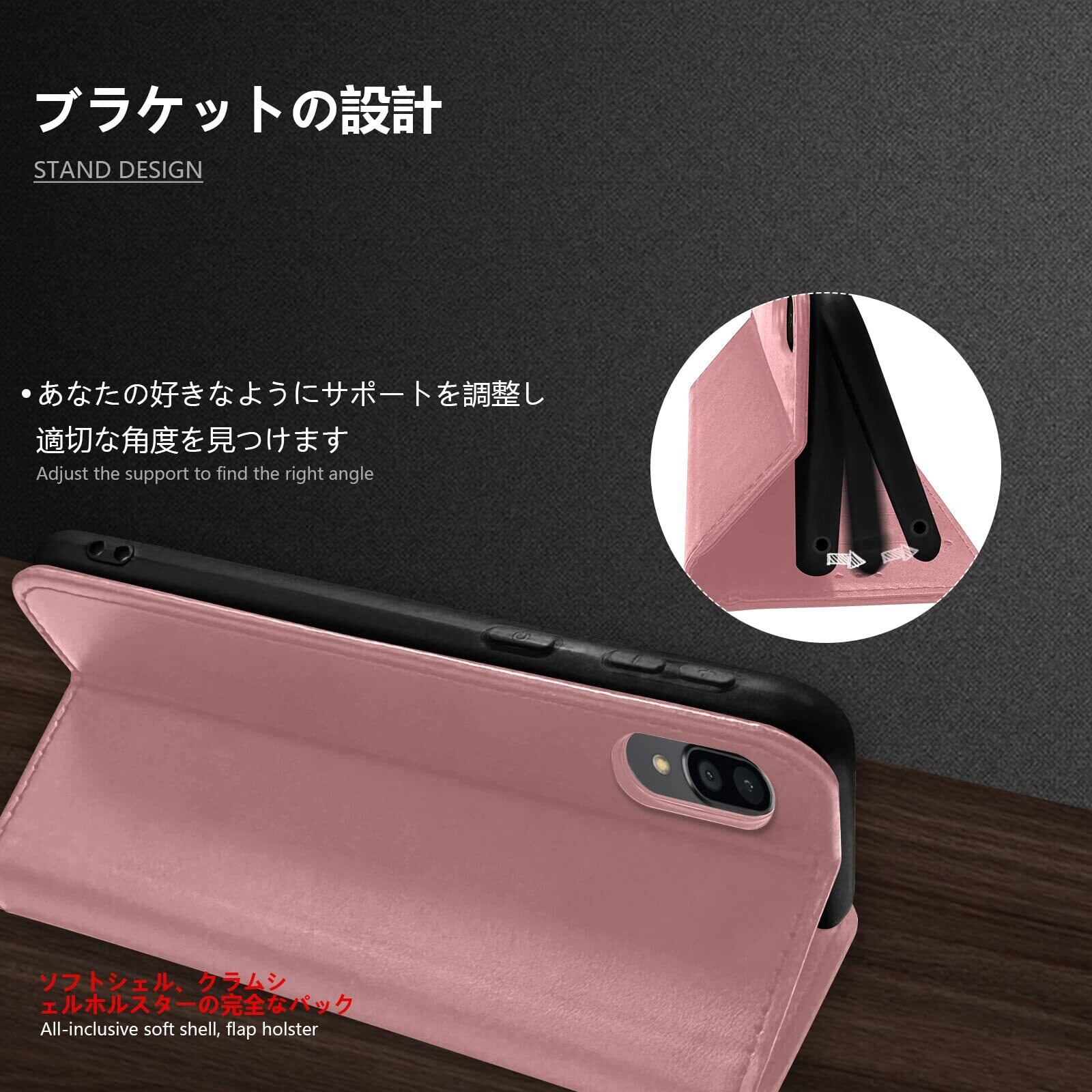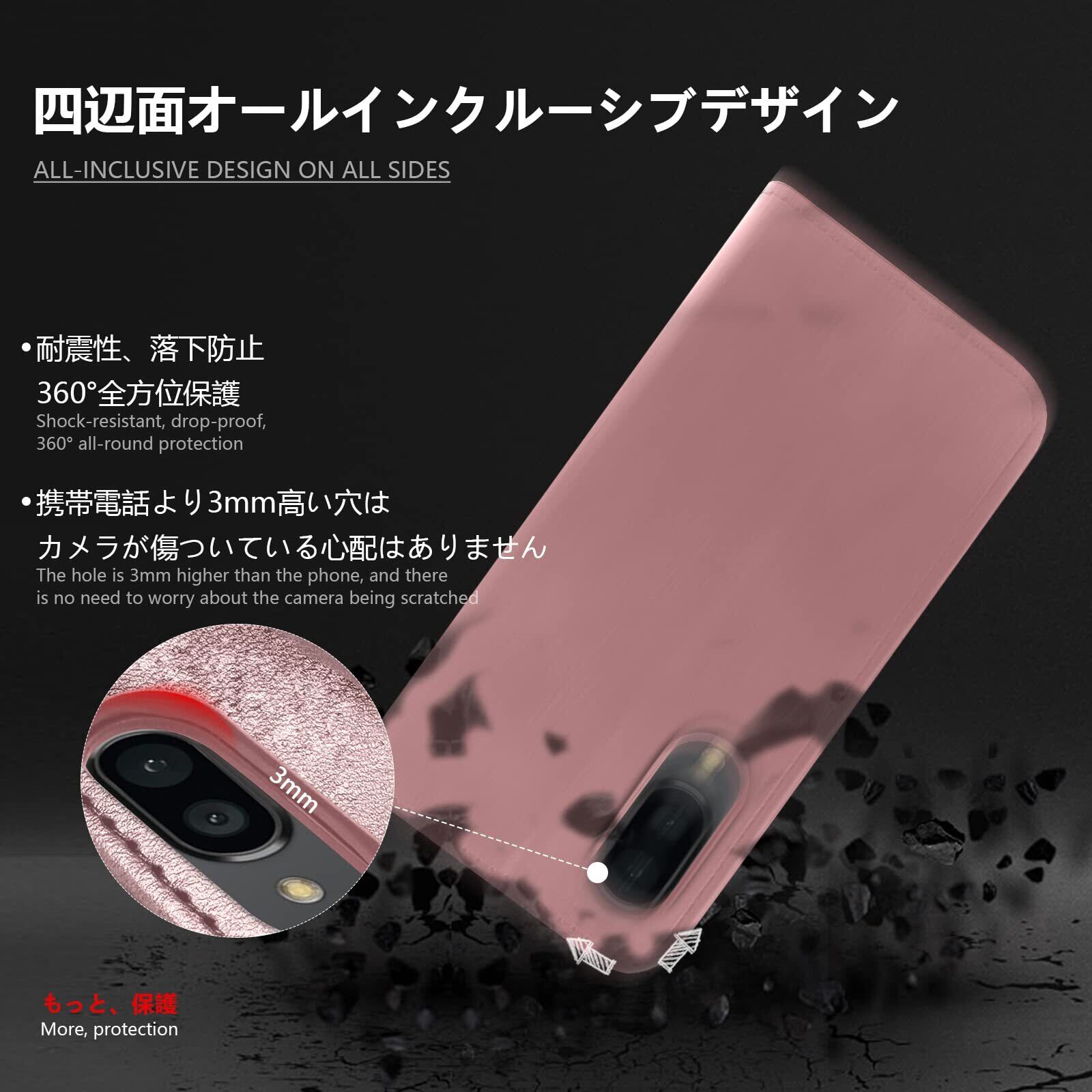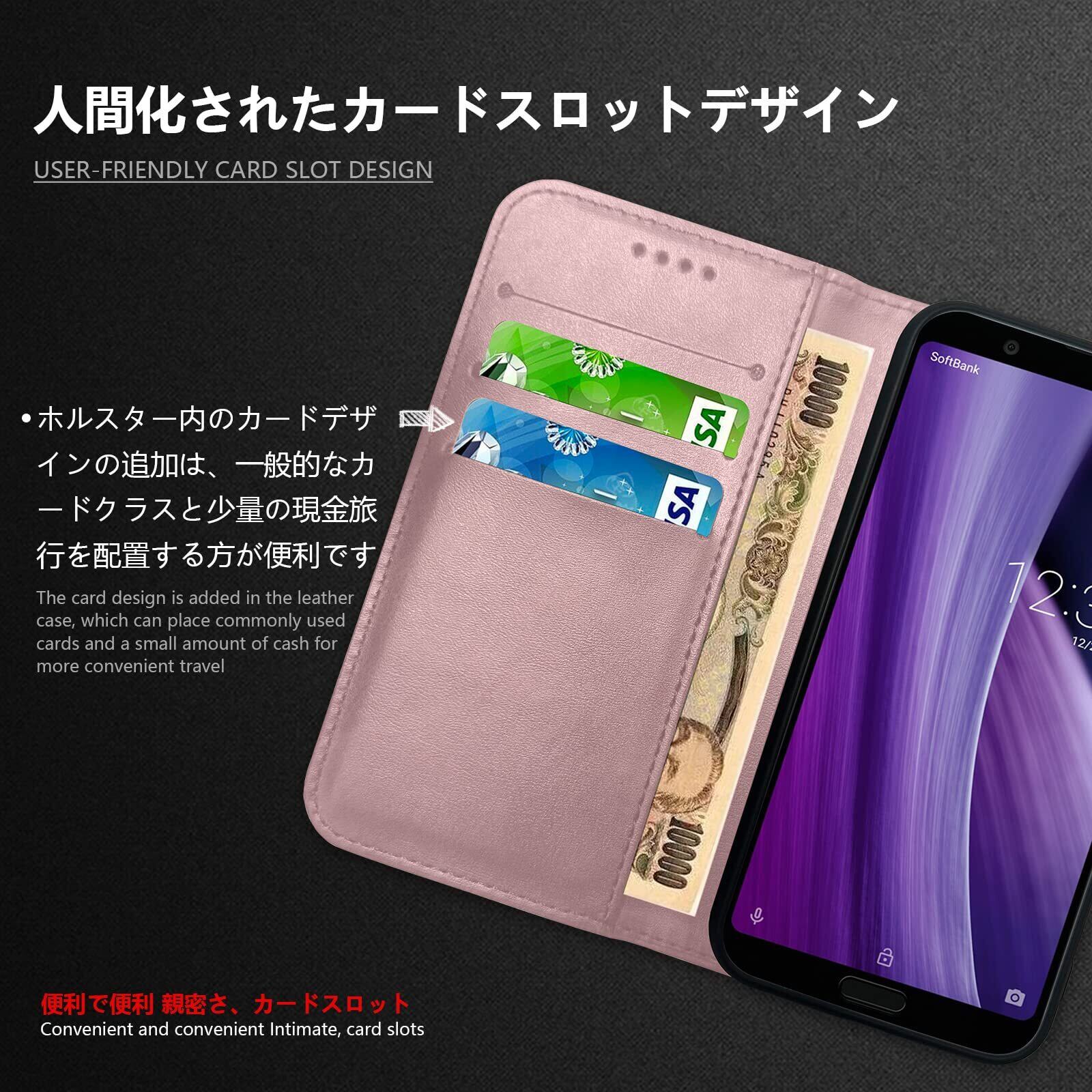 NPOFR SXMO For AQUOS sense3 用の ケース 手帳型 スマホケース ファッション 財布 耐衝撃 SH-02M/SHV45/sense3 basic/sense3 lite/SHV48/SH-RM12/Android One S7 カバー カードポケット マグネット式 スタンド機能付き 全面保護 アクオスセンス 3 用の 携帯カバー スマホケース(ローズゴールド)