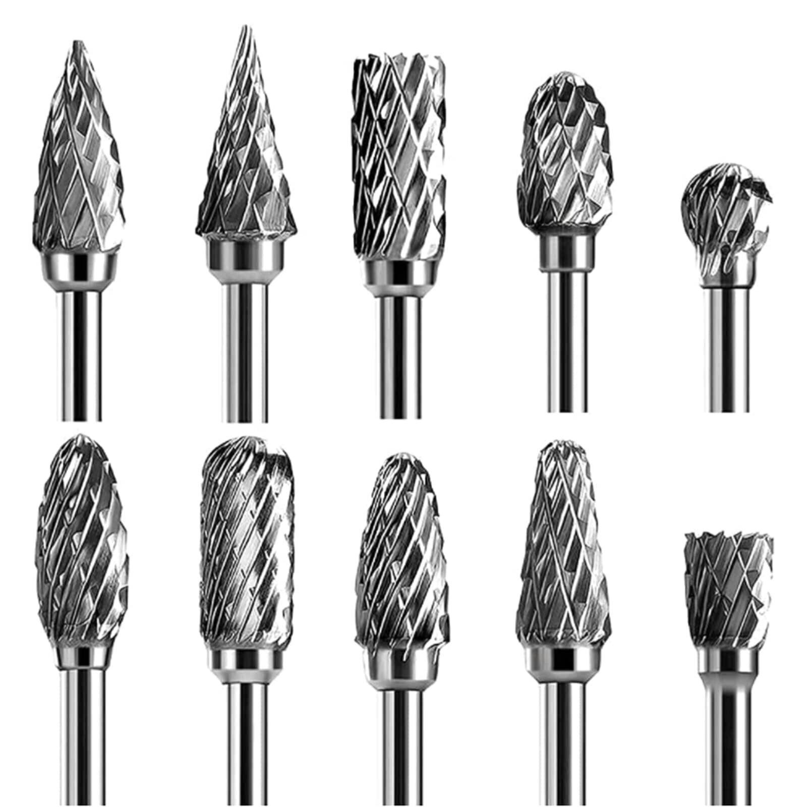 YINKE 超硬バー リューター ビット 高速度 工具 切削 研磨 仕上げ用 電動ドリルセット ツールキット 10種類 10本セット (3mm 軸 刃幅6mm)