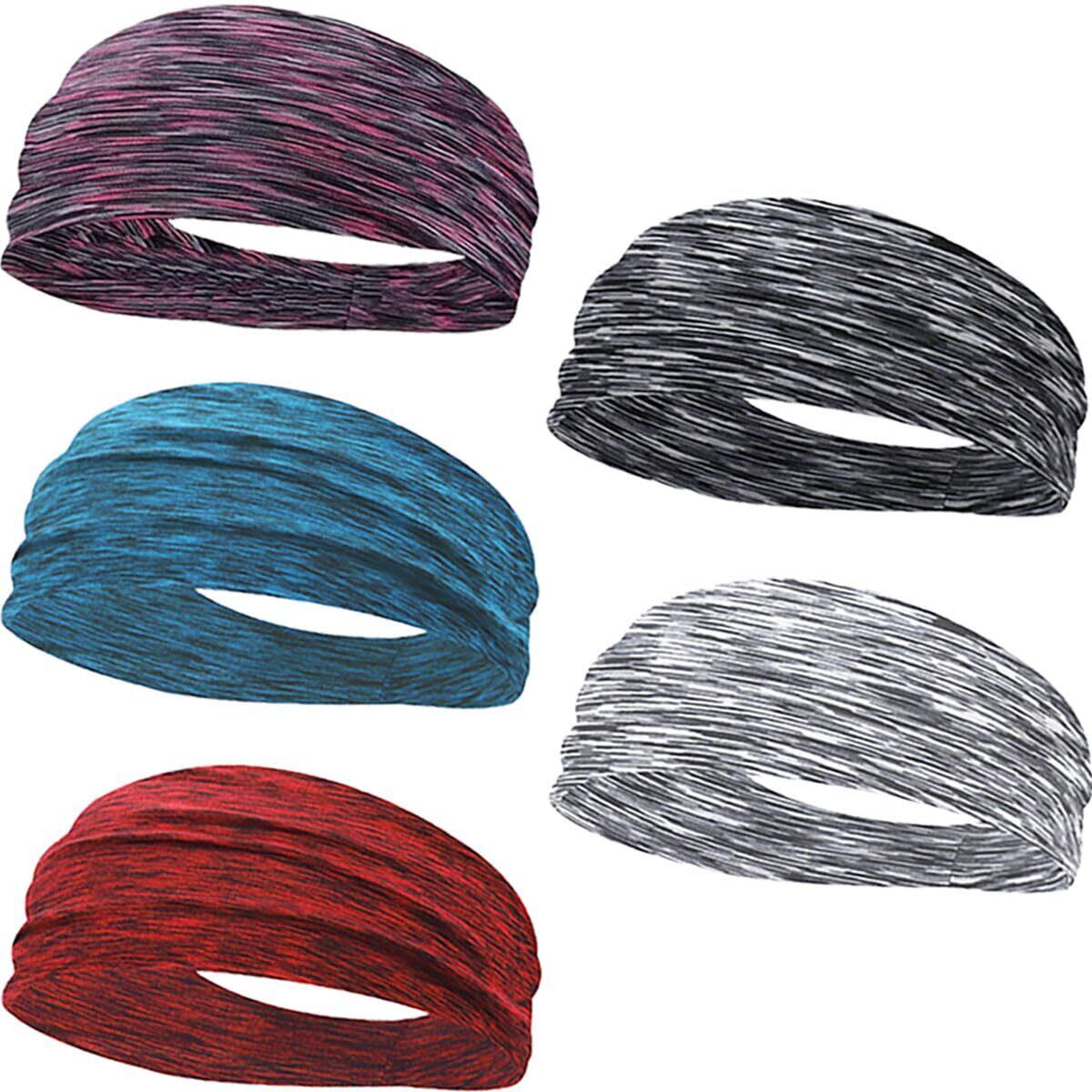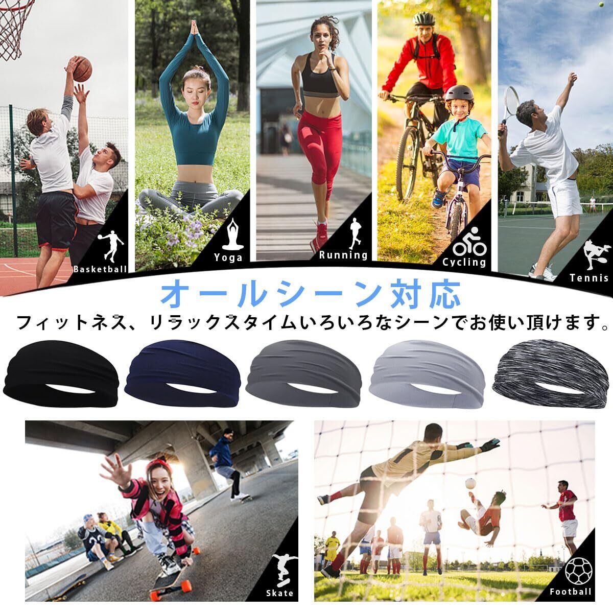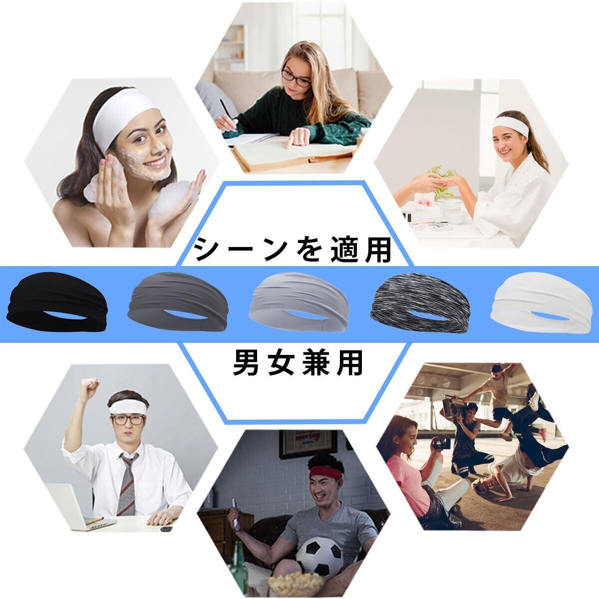 ヘアバンド ヘッドバンド ヘアターバン バンダナ【汗止め・髪留め・洗顔用】通気性 伸縮性 薄手 幅広 ランニング ヨガ サッカー テニス 野球 男女兼用 5枚セット(ストライプ赤色+ブルー+レッド+ストライプグレー+ストライプライトグレー)