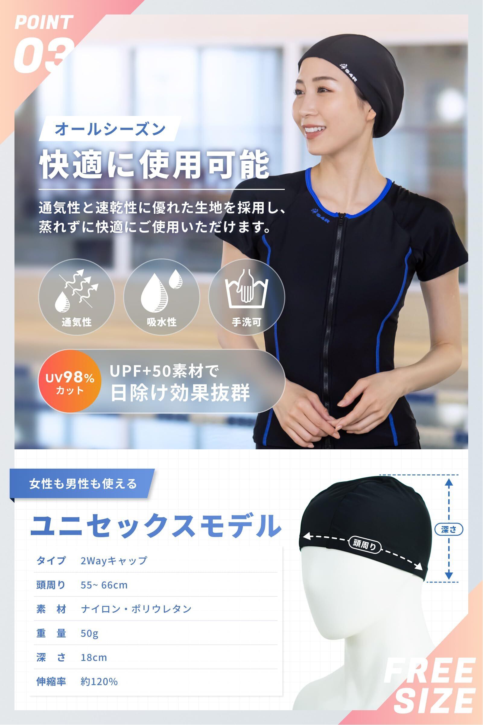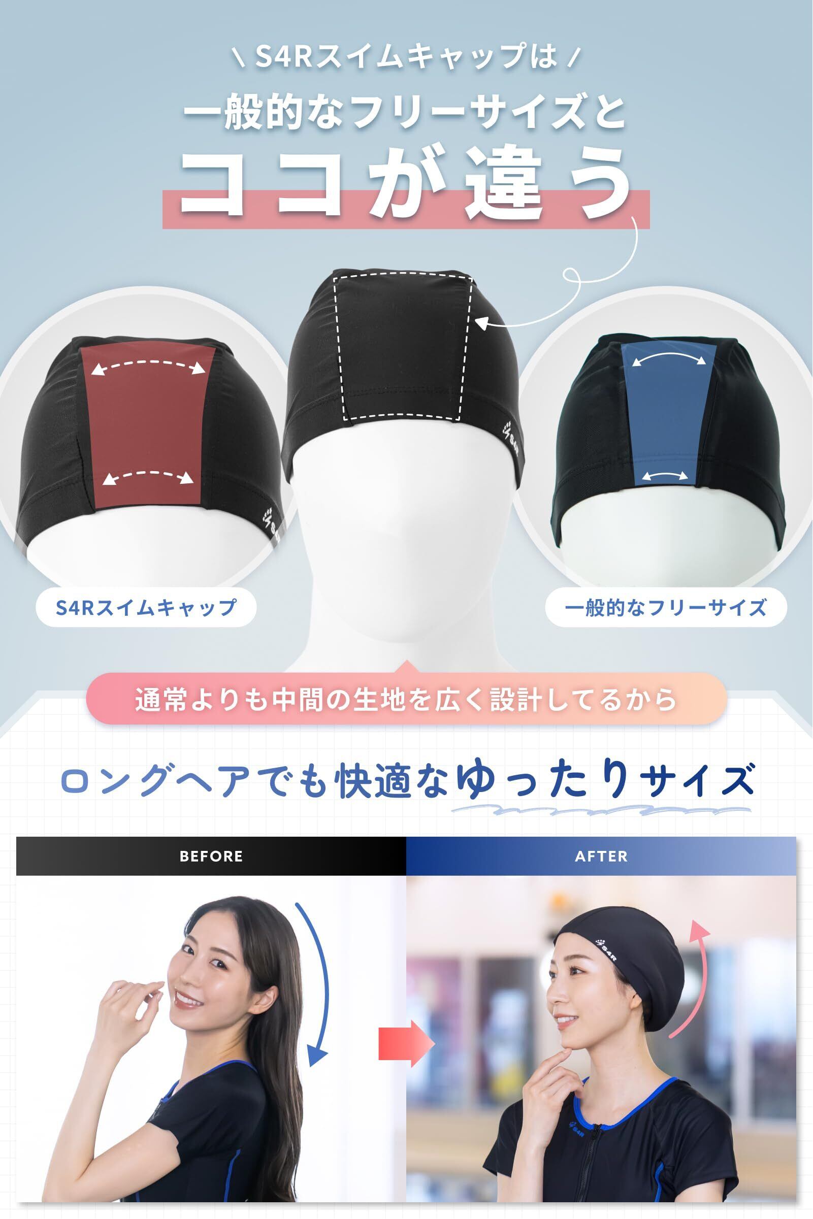 S4R(エスフォーアール) スイムキャップ 水泳帽 水泳キャップ スイミングキャップ 大人 子供【ゆったりサイズで圧迫感ゼロ!】レディース メンズ (競泳・フィットネスに最適!) スイミング 55cm~66cm (ロゴあり)