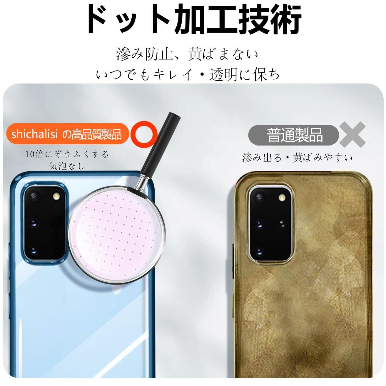 【スタイリッシュな外観&ウォーターマーク防止】背面部分が透過デザインでs20本体のカラーや質感を損ないません.本体とピッタリ密着して違和感がない一体感がすごく格好いいです.細かなマイクロドットパターンにより、水がにじんだように見えるのを防ぎます。