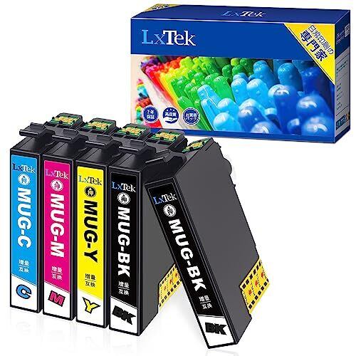 【パッケージ内容】LxTek MUG-4CL マグカップ インク 増量4色セット+黒1個 mug-bk*2/ mug-c*1 / mug-m*1 / mug-y*1(合計5本)、取り扱い説明書。