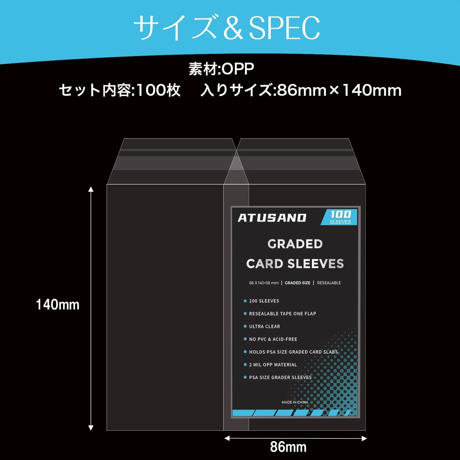 ATUSANO PSAスリーブ 鑑定専用 200枚 PSAパーフェクトフィットスリーブ 透明 出し入れ簡単 PSAグレーディングホルダースリーブ 擦り傷防止 psa鑑定 ケース 保護