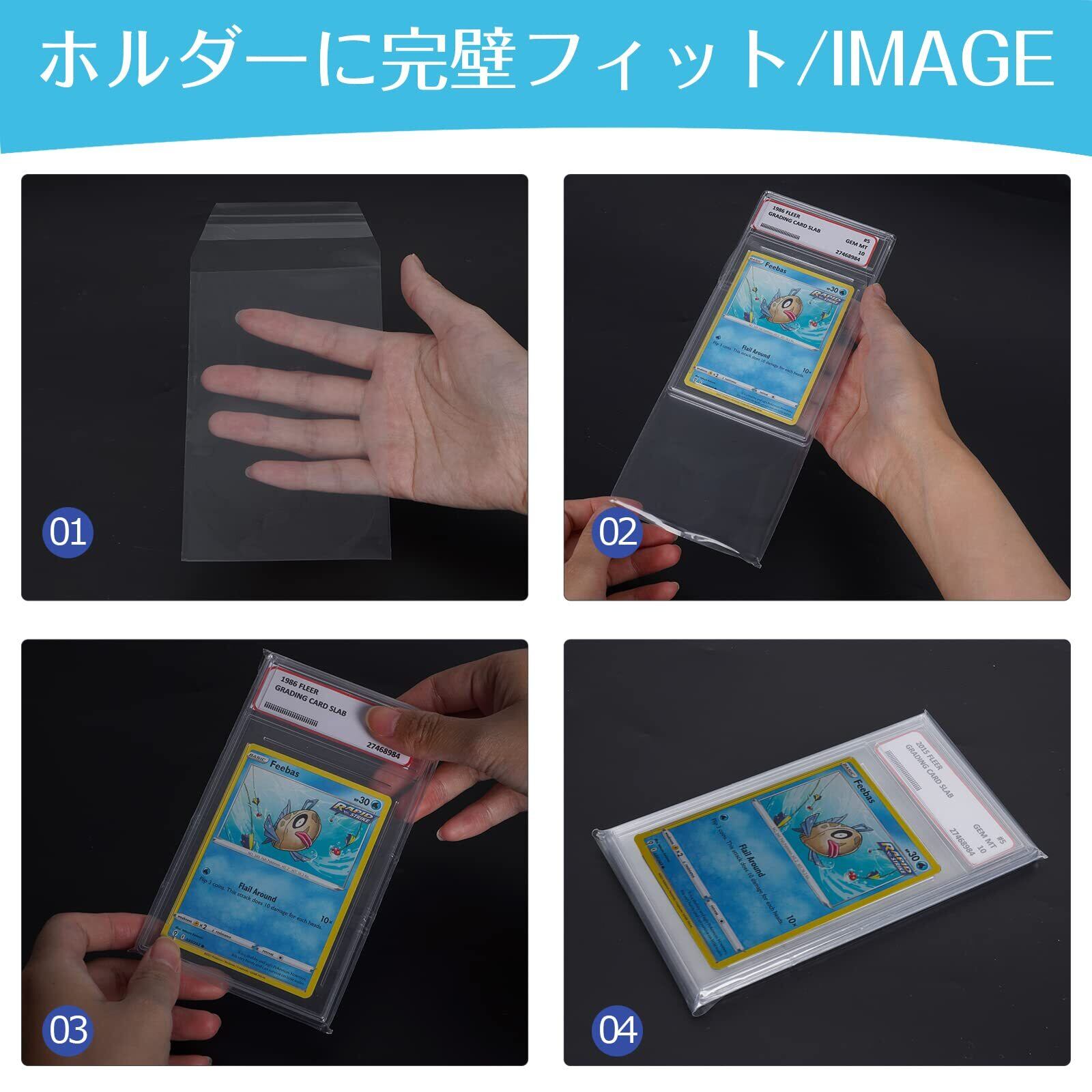 【psa スリーブの設計とジャストフィット】psa 袋のリップは繰り返し貼り付けることができ、台形のデザインを採用しており、使いやすく美しくなっています。PSAスリーブのサイズは精密に計算されており、PSAスラブプロテクターのサイズに完壁フィットします。