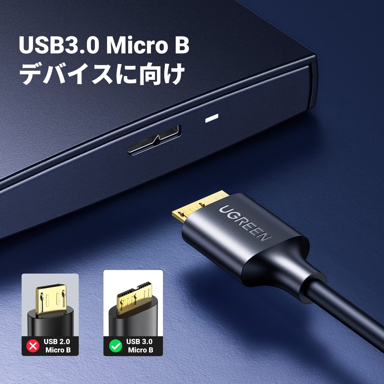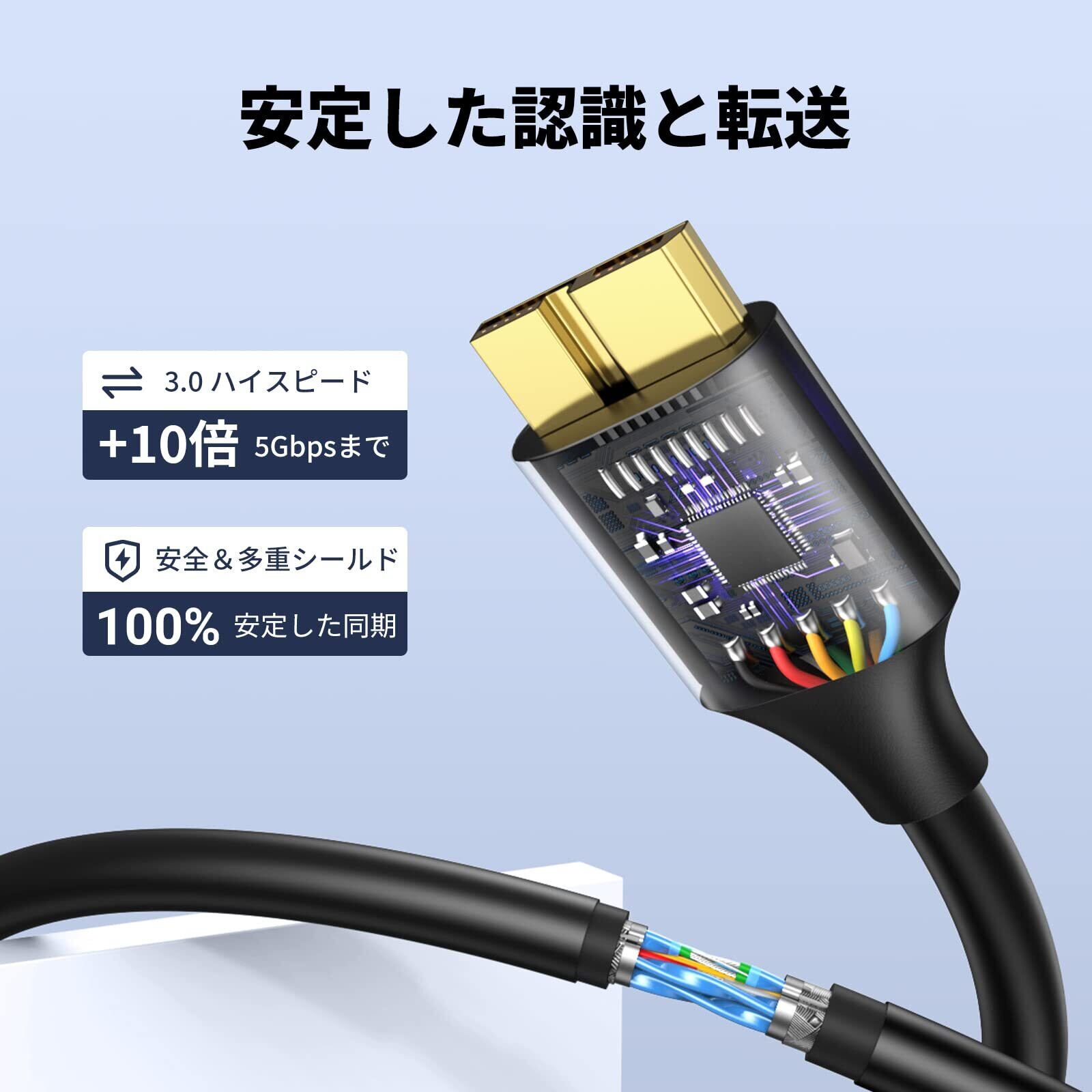 UGREEN USB3.0 MicroB USBケーブル タイプAオス - マイクロタイプBオス 高速転送と急速充電 外付けHDD SSD Blu-ray BDドライブ デジカメ Galaxy Note3 S5などに対応 0.5M