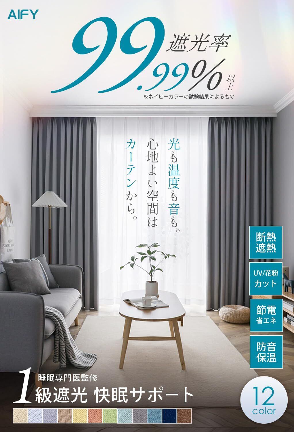 AIFY カーテン 2枚セット 1級 遮光 小窓 ドレープカーテン UVカット 形態記憶加工済み 断熱 節電対策 昼夜目隠し 保温 おしゃれ 洗える 洗濯機対応 (カーテン2枚) 幅100cm×丈178cm スモークグレー