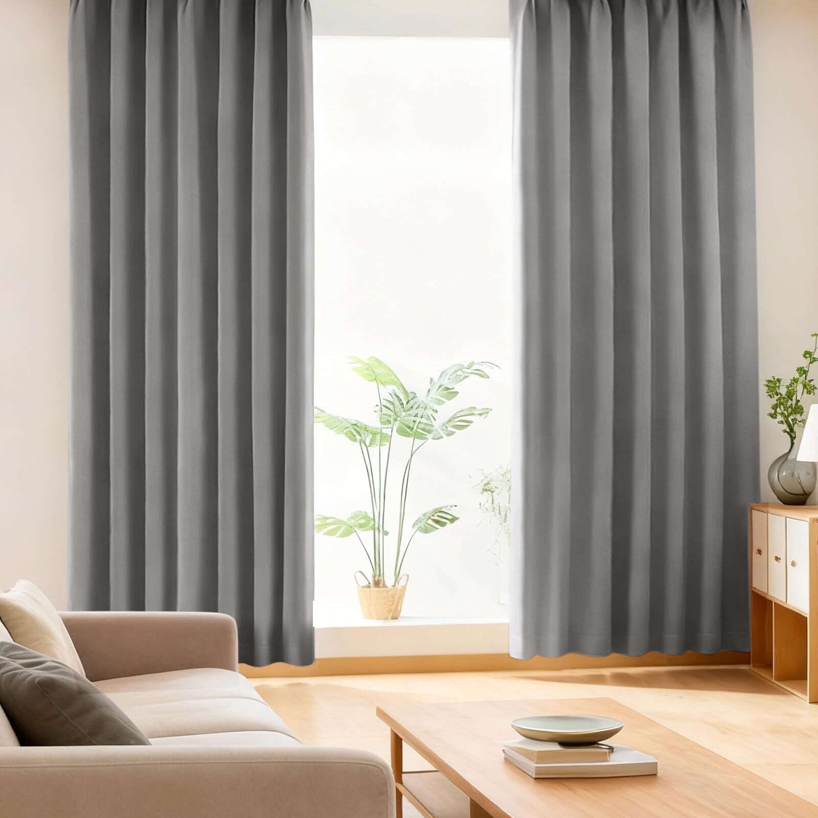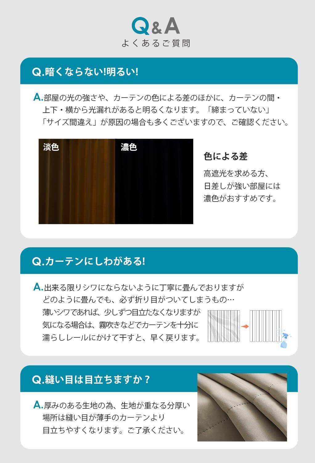 【1級遮光】迷ったらこれ!シンプル&機能性重視の方におすすめです。この2枚セット(99.9%以上遮光ドレープカーテン2枚)を選択する理由:①光沢を抑えたマットな質感が美しい。②黒ずみの少ないなめらかな生地。③快適に過ごせる優れた性能。遮光率99.9%以上、日差しの強い窓でもしっかりと遮光できるので、光をできる限りシャットアウトしたい方におすすめです。