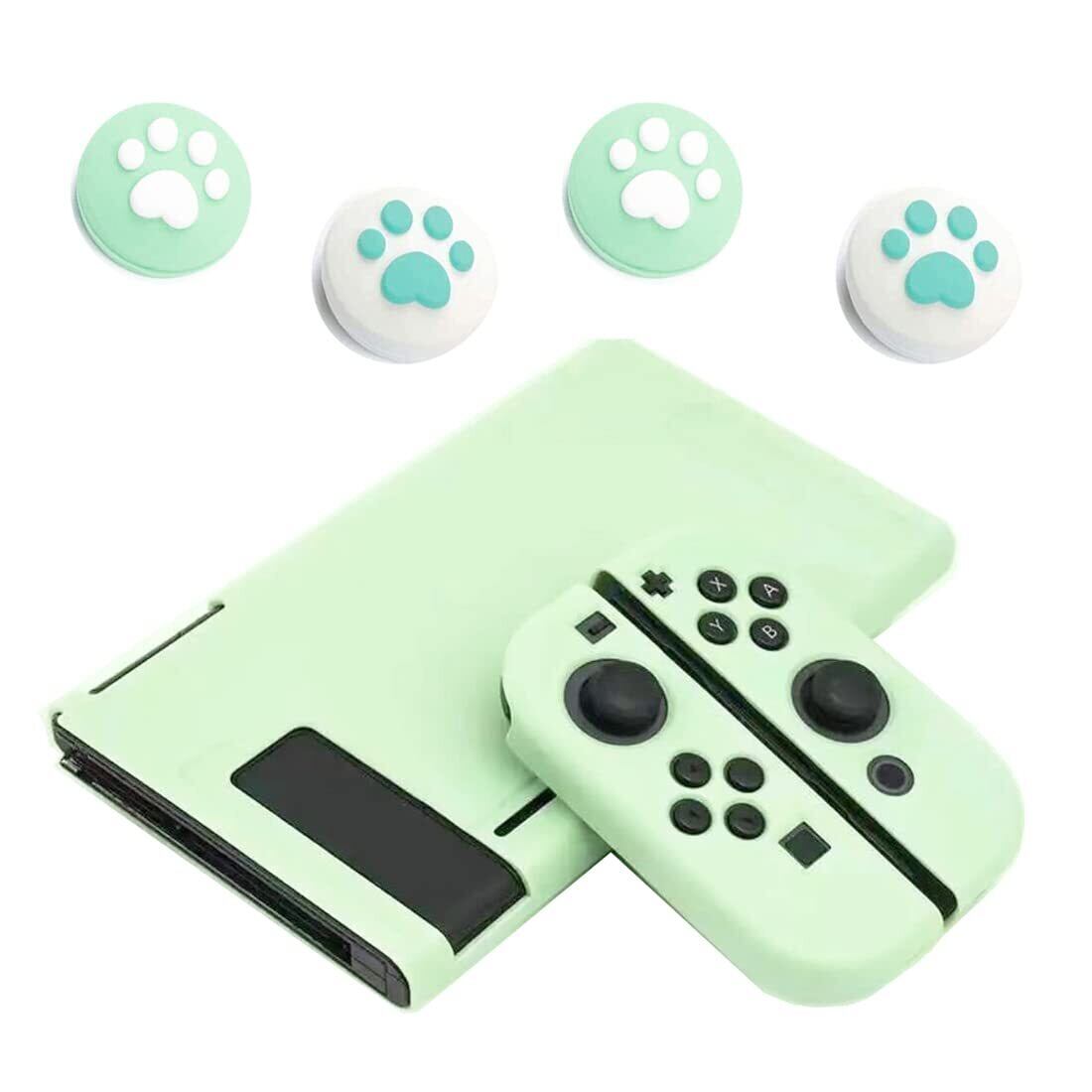 Switch用カバー&ジョイスティックカバー スイッチ用ケース カバー アナログスティックカバー 4x猫爪肉球 Joy-Con用カバー 全面保護ケース 耐久性tpu素材 キズ防止 衝撃吸収 着脱簡単 擦り傷防止 取り外し可能 指紋防止 可愛い (グリーン)